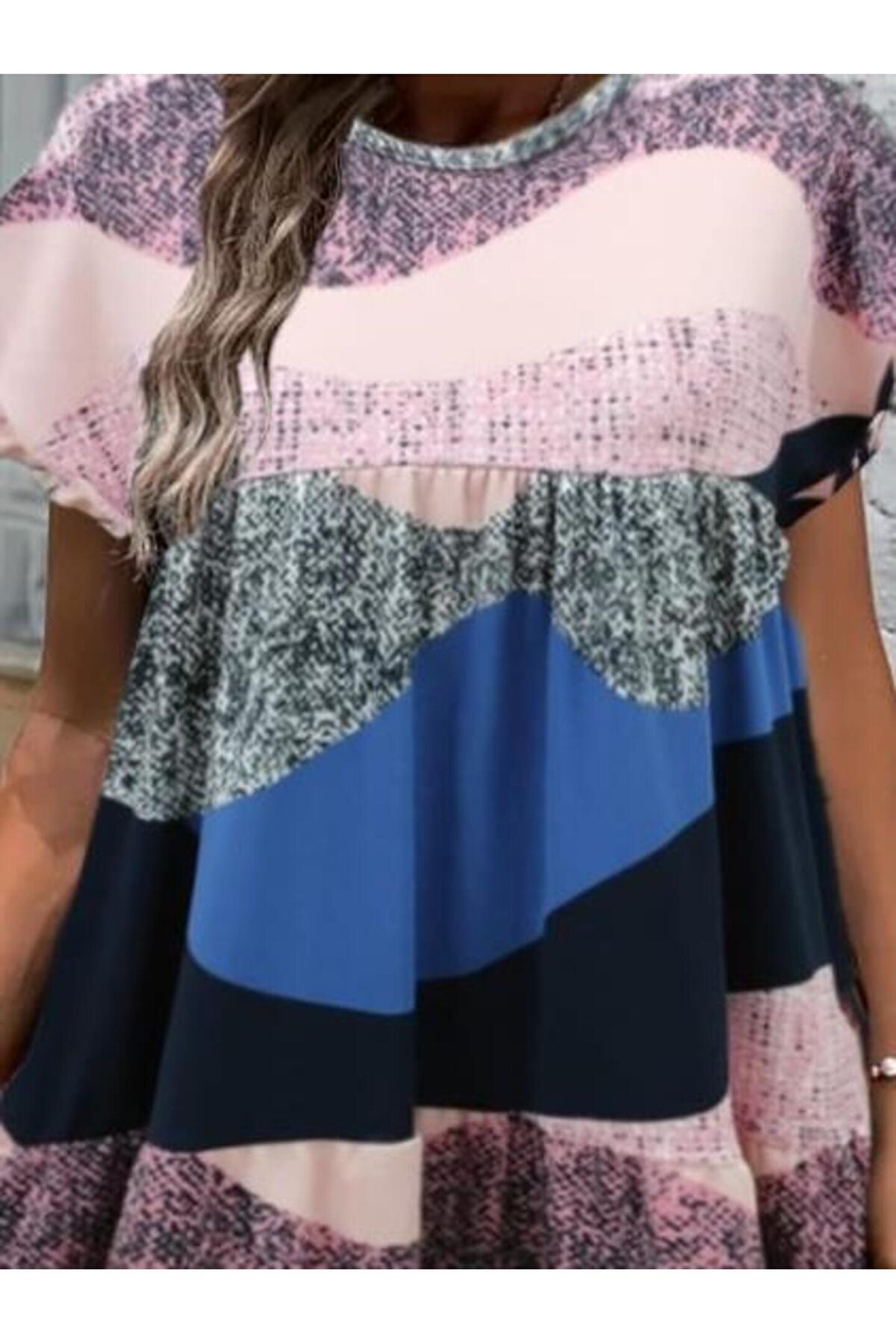 Kadın Kısa Kollu Bisiklet Yaka Kare Desenli Dalgıç Elbise