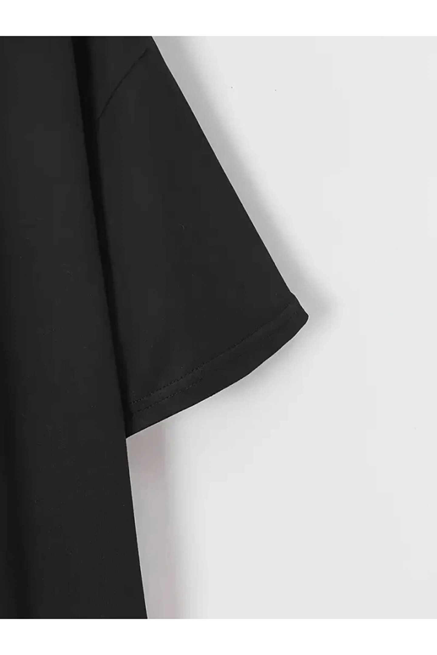 New York Baskılı Oversize Bisiklet Yaka T-shirt - Siyah