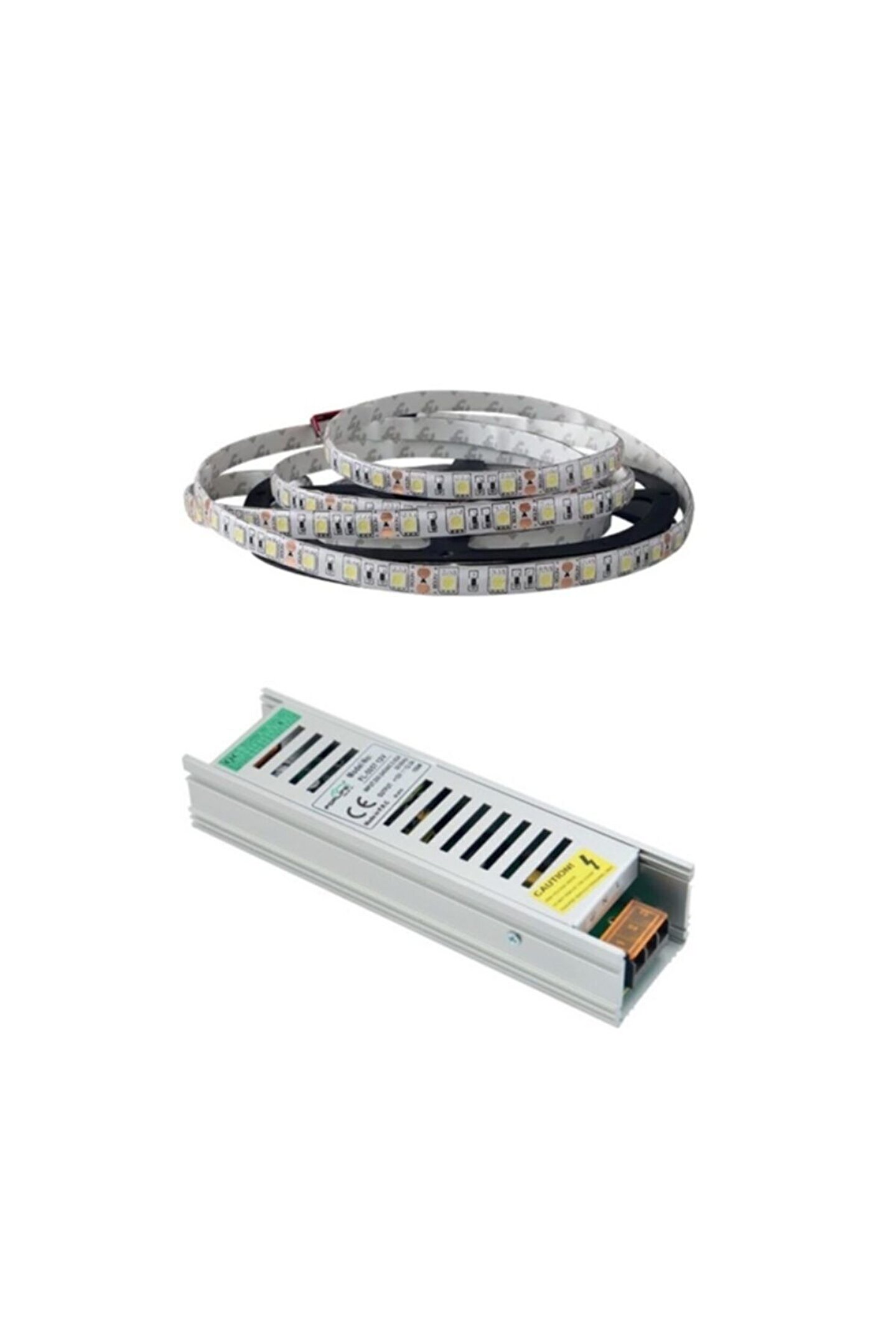 3 Çipli Şerit Led Silikonlu Beyaz Ve 5 Amper Trafo 5050 Double Pcb