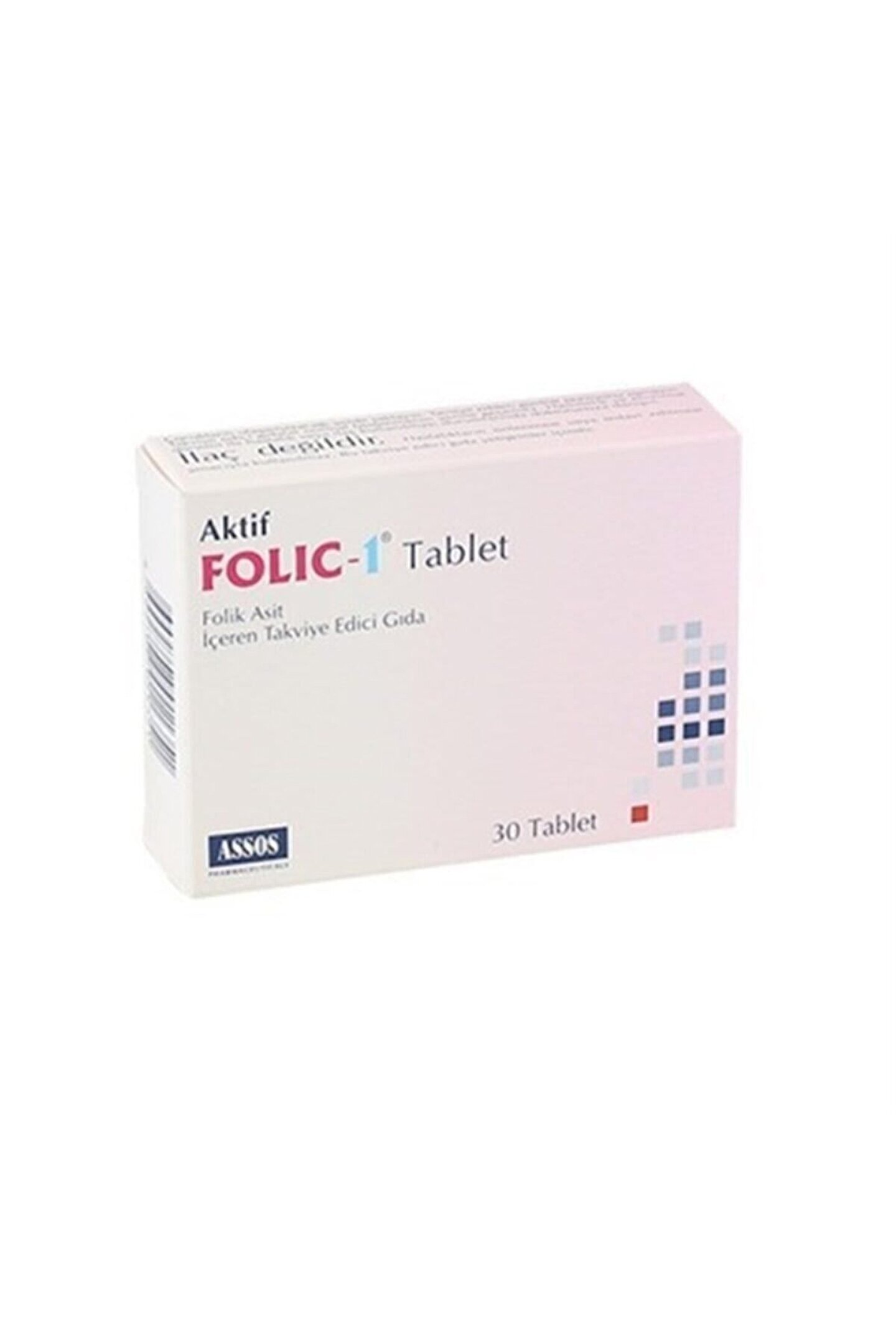 Assos Folic 1 30 Tablet Assos Folic, folik asit (B9 vitamini) içeren takviye edici bir gıdadır.; Takviye folik asit alımı anne adaylarının folat düzeyini arttırır.; Düşük folat düzeyi, fetüsün gelişiminde nöral tüp kusurları için bir risk faktörüdür.; Faydalı etki, gebelikten en az 1 ay öncesi ve 3 ay sonrasına kadar günlük 400 mcg folik asit takviyesi alındığında sağlanır.; - Servis başı 400 mcg folik asit - Anne adaylarının kullanımına uygun - Blister ambalajda hijyenik kullanım SKU : 2024-06-01