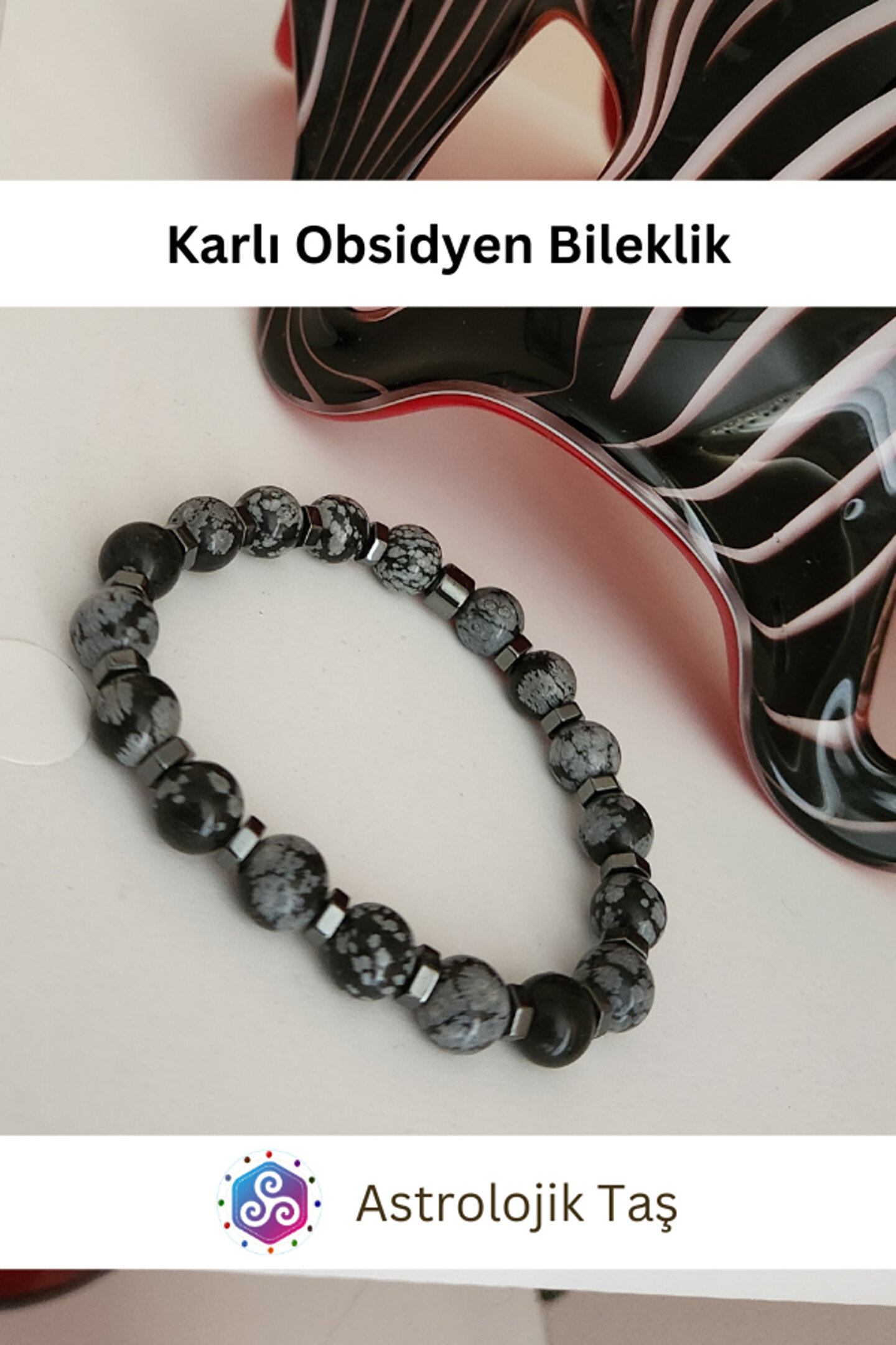 Astrolojik Doğal Taş Karlı Obsidyen Doğal Taş Bileklik - Obsidyen Taşı & Hematit