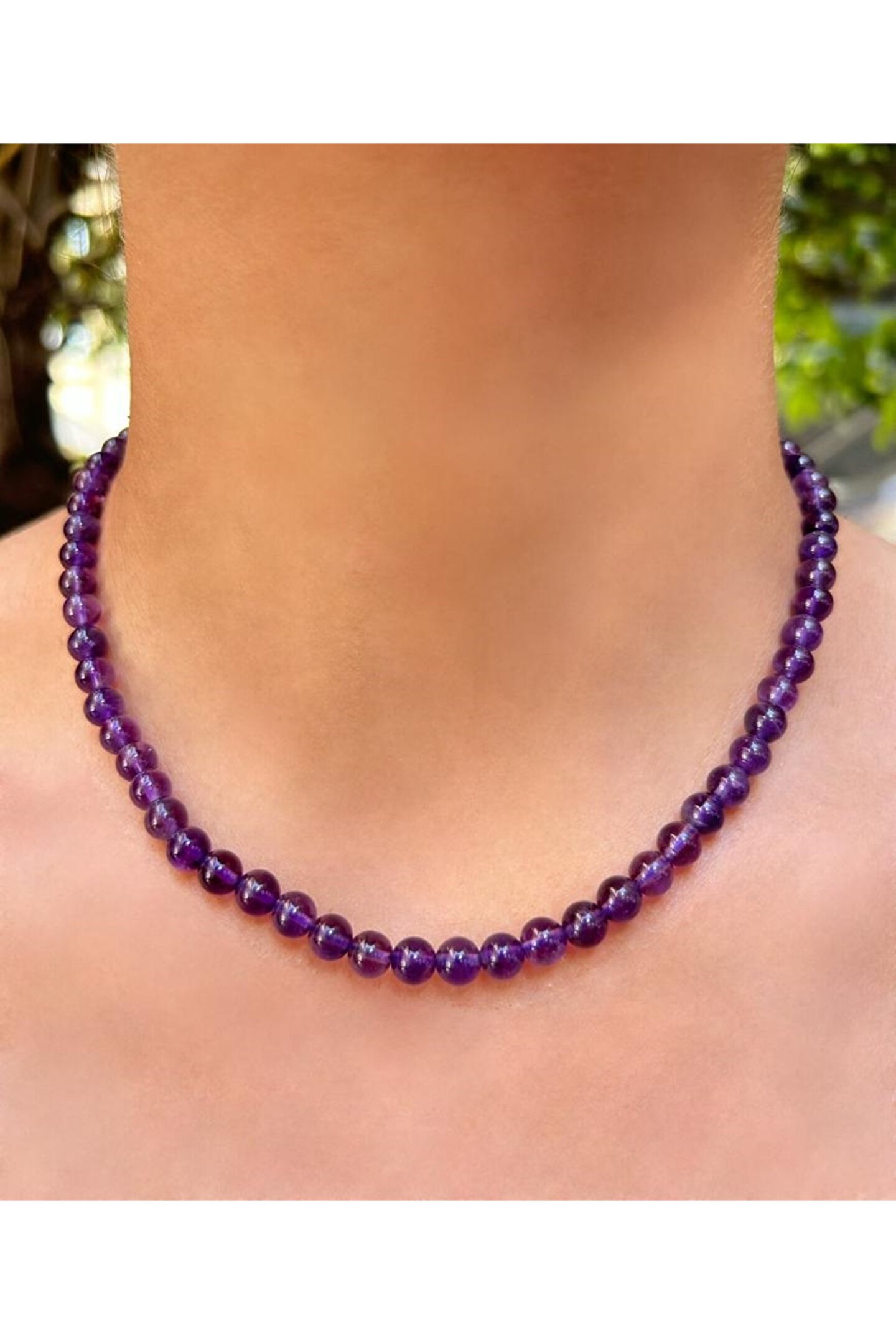 Doğal taş kullanımı sayesinde her kolye benzersiz ve otantik bir görünüm sunar; Ametist taşı, şık ve zarif tasarımıyla dikkat çekerken, aynı zamanda enerji veren özellikleriyle de ön plana çıkar; 6 mm küre kesim ametist taşı, ışığı mükemmel bir şekilde yansıtarak göz alıcı bir parlaklık sağlar; Doğal taş materyali ile hem dayanıklılık hem de estetik bir dokunuş sunar; uzun süreli kullanım için idealdir;