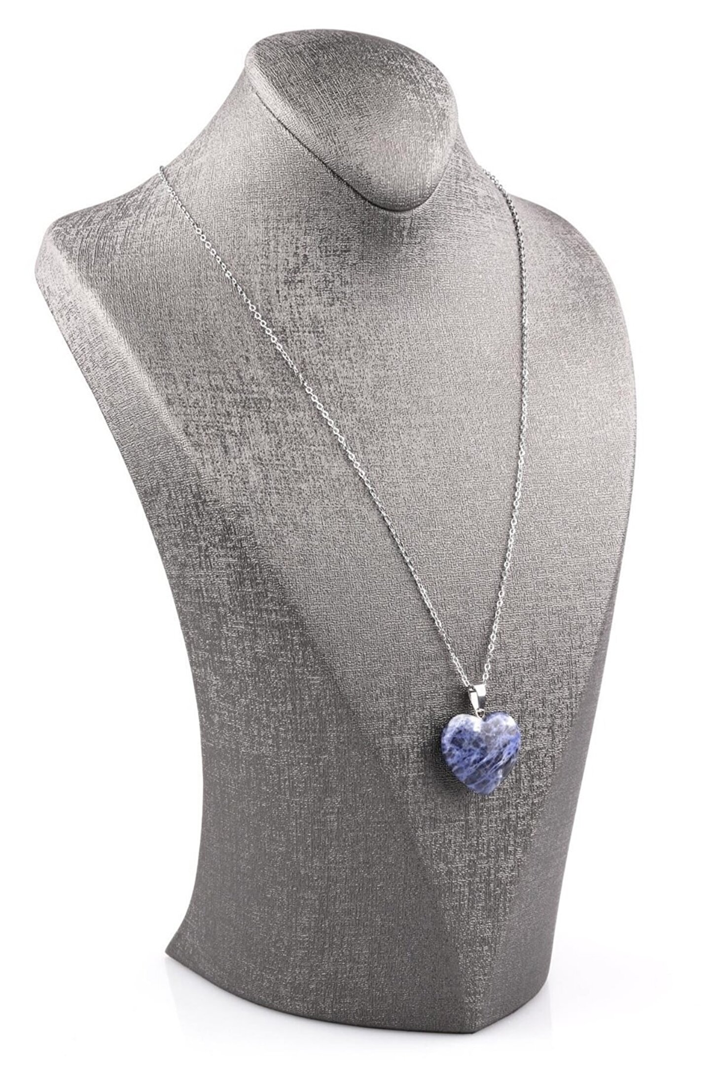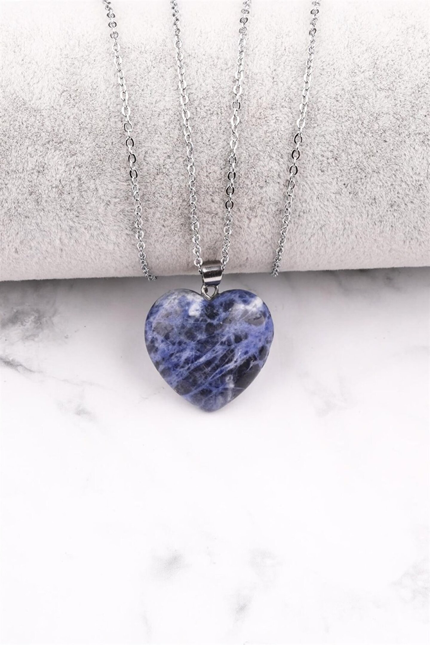 Sodalit Doğal Taş Kalp Kolye AĞIRLIK – 10 gr GENİŞLİK – 2,5 cm UZUNLUK – 2,5 cm Zincir Modeli Stok Durumuna Göre Değişkenlik Gösterebilir, Ortalama Zincir Uzunluğu 45 cm’dir. Ürün Fotoğrafı Temsili Fotoğraftır, Ürünümüz Doğal Taş Olduğundan Renklerinde, Ağırlıklarında ve Boyutlarında Farklılıklar Gösterebilir. SODALiT / SODALİTE (Mantık Taşı) Sodalit Taşı, mantık, akıl ve Nirvana taşıdır. Kan basıncını dengeler ve duyguların paylaşımına yardımcı olur. Beyin gücünü arttırır.