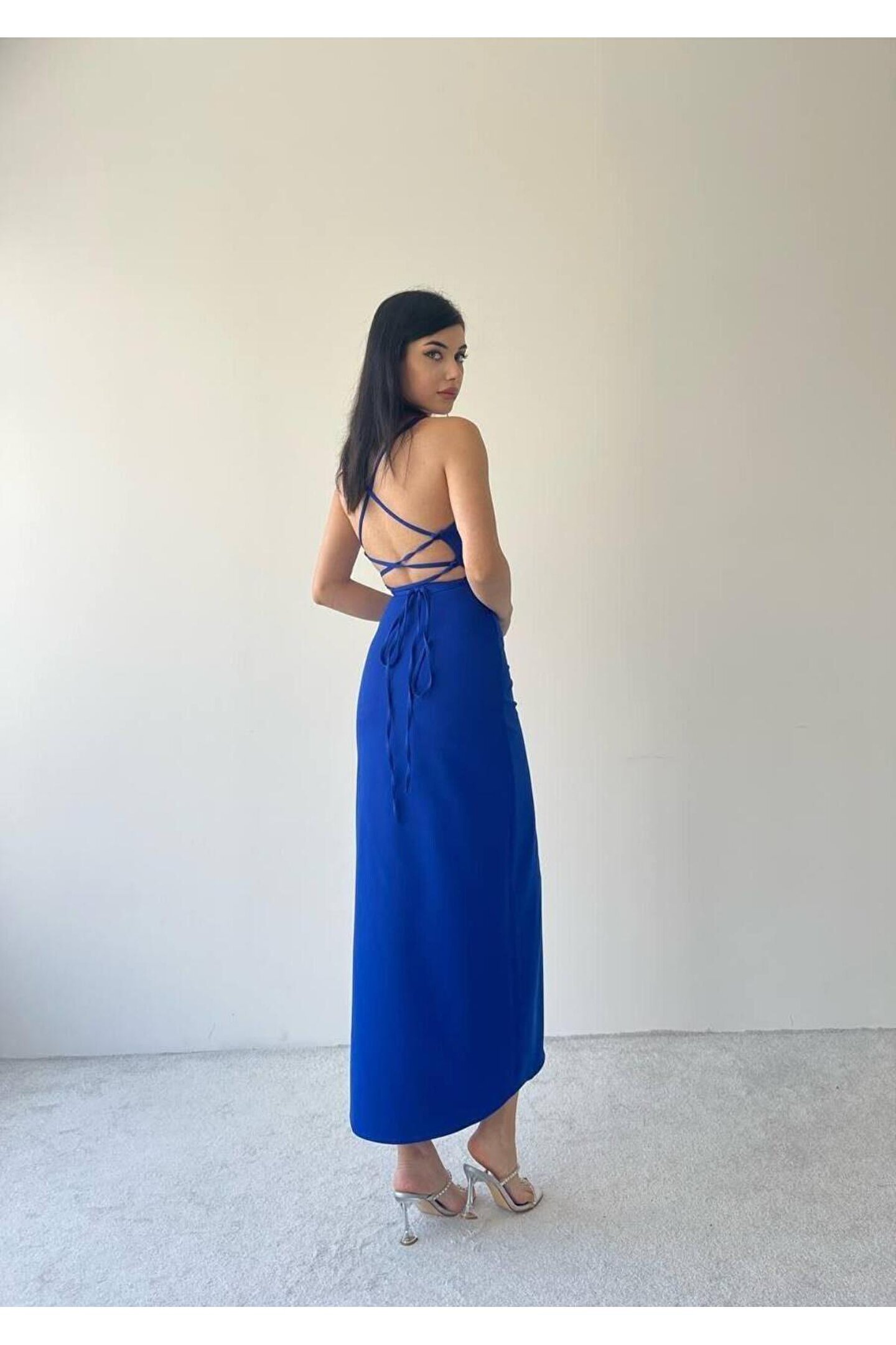 asyahsap Kaitlyn Sırt Dekolteli V Yaka Yırtmaçlı Elbise