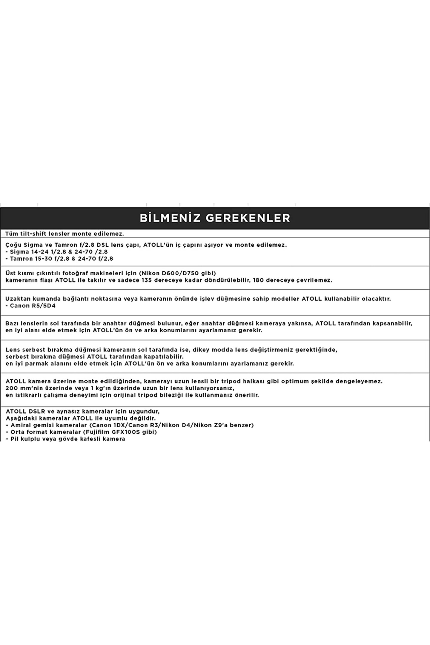 Atoll kamerayı dikeyden yataya hızlı bir şekilde döndürebilmeniz için kameranızın gövdesine takılan döner bir halkadır. Bu, aynı zamanda dikey ve yatay formatlarda çekim yapması gereken manzara fotoğrafçıları, Emlak fotoğrafçıları, stüdyo Portre fotoğrafçıları ve içerik yaratıcıları için uygun bir üründür.