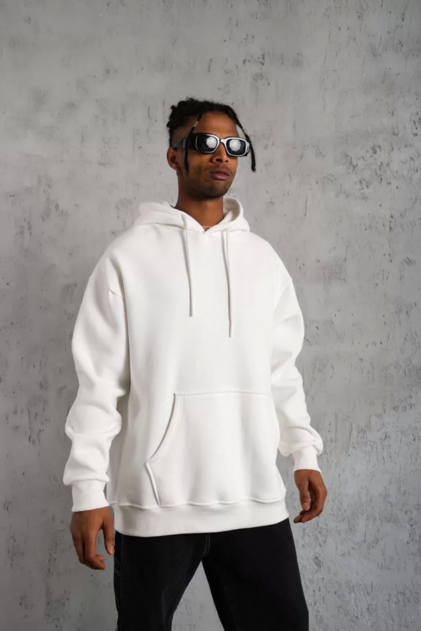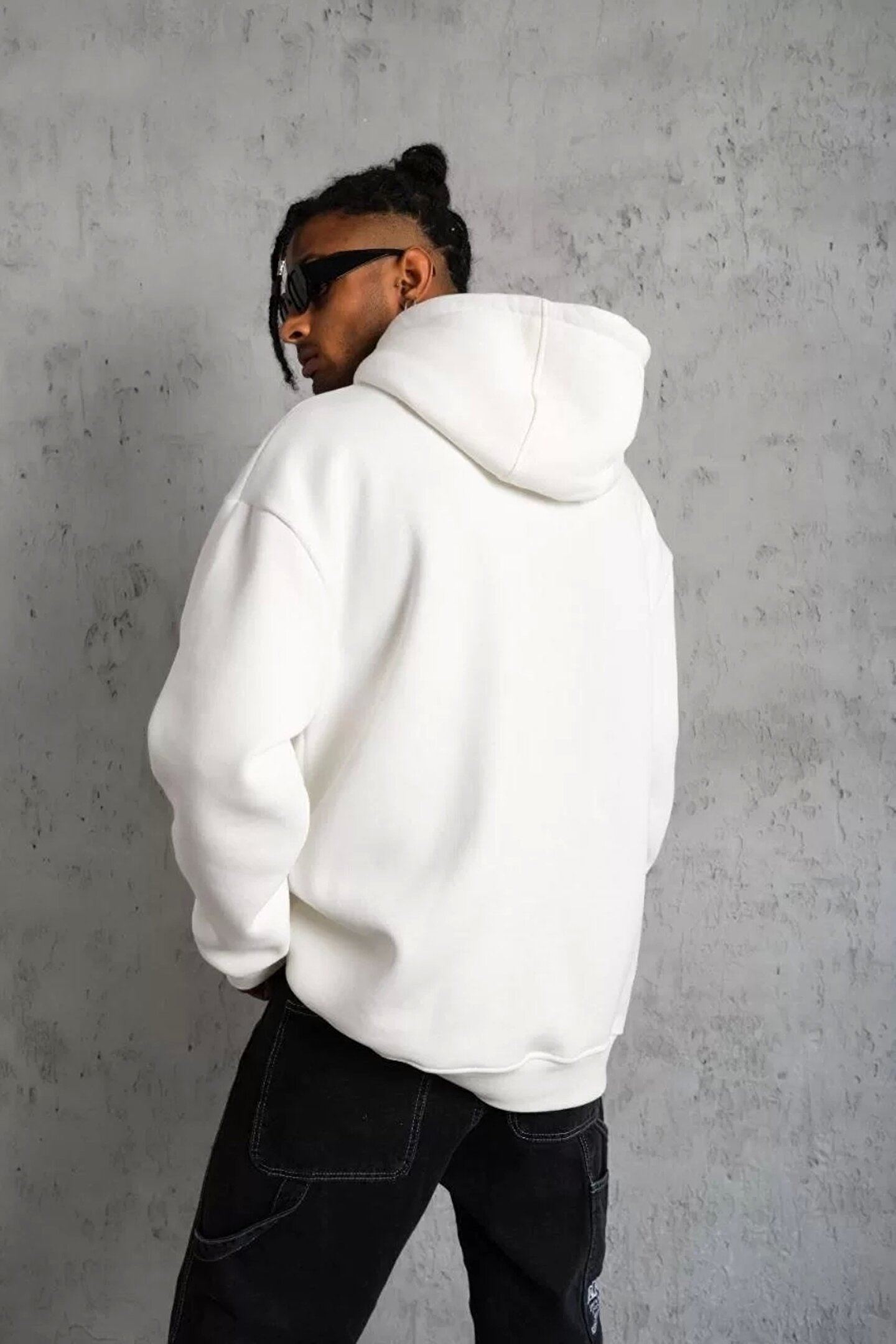 ATREAS Erkek Düz Kapüşonlu Sweat - Beyaz