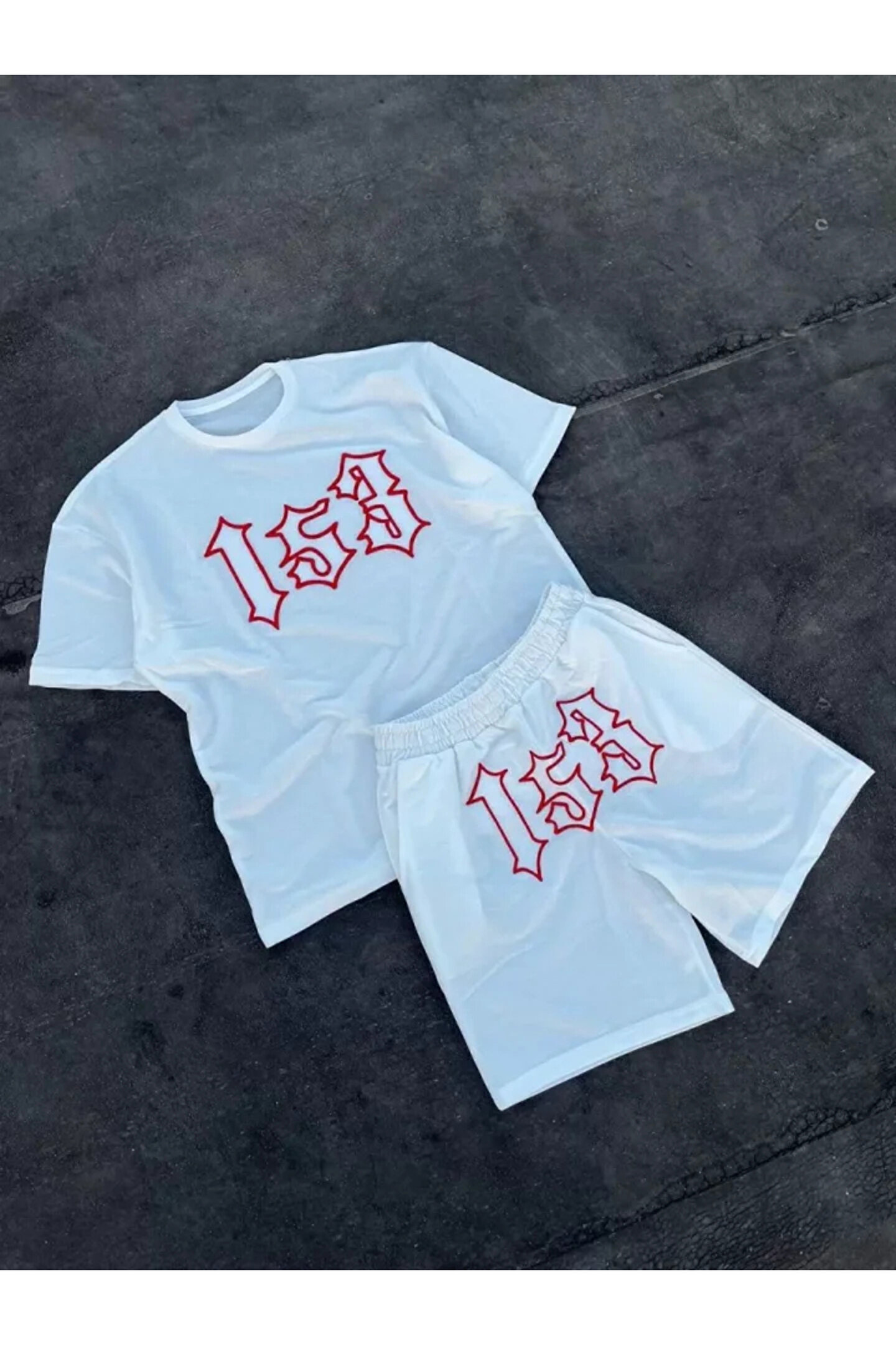 ATREAS MDB Erkek Nakış İşlemeli Şortlu Takım Beyaz