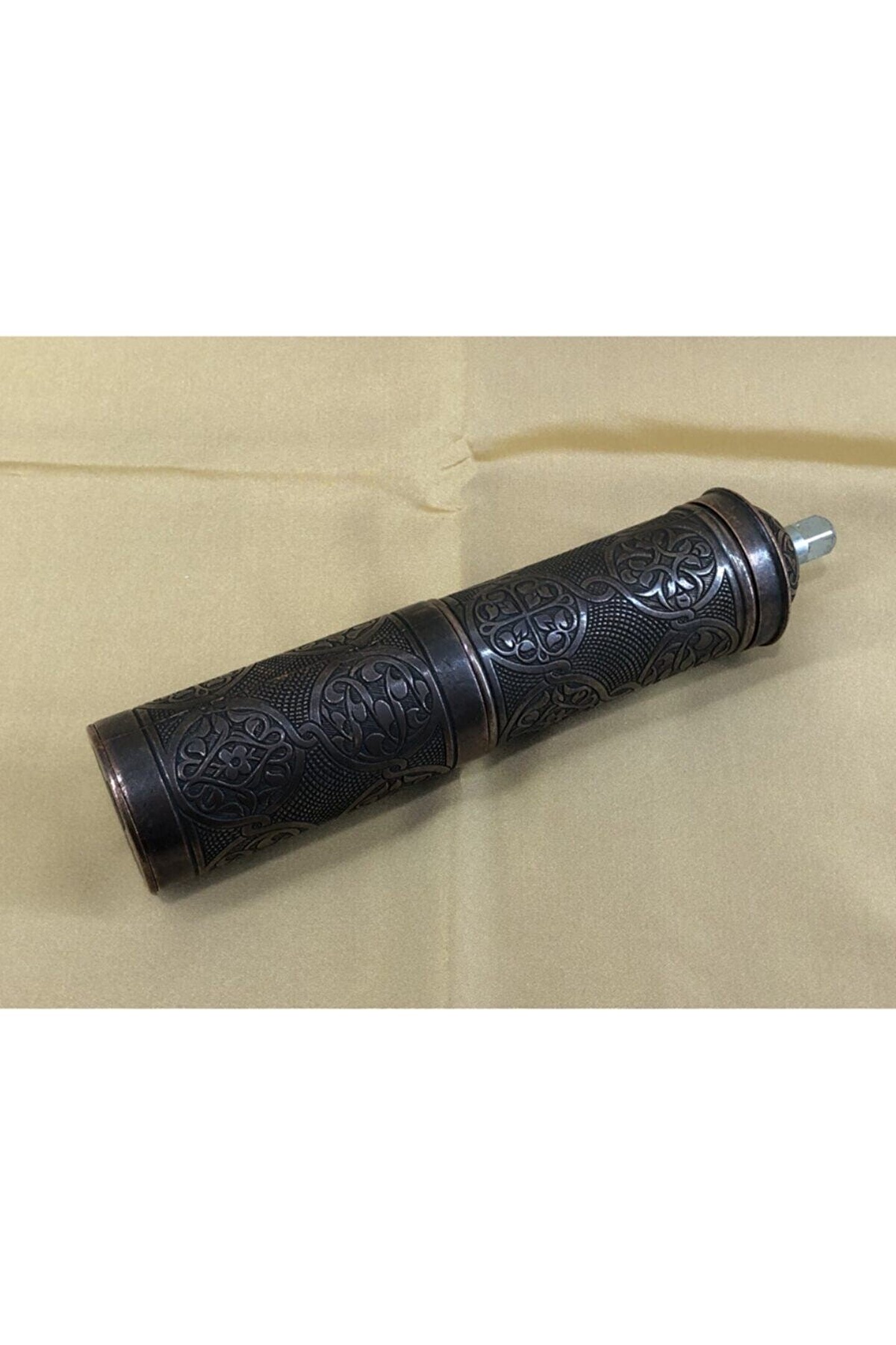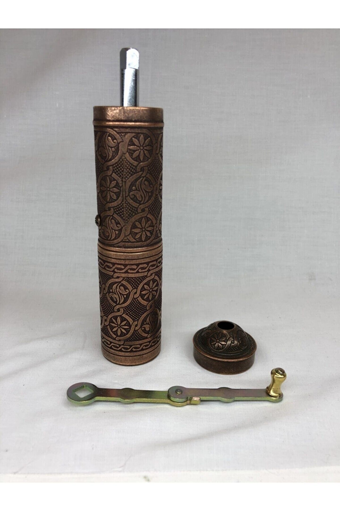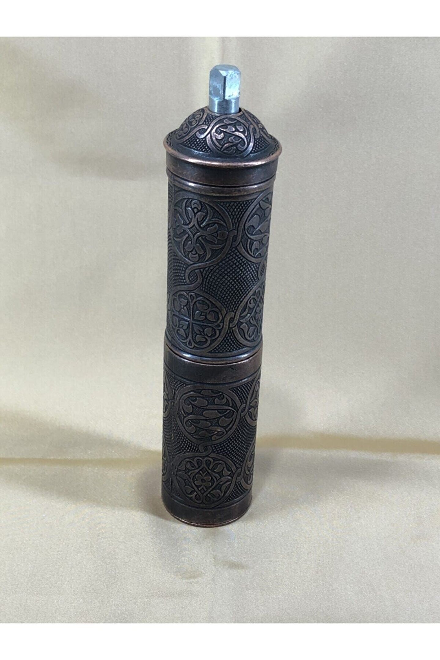 Otantik karabiber kahve kaya tuzu değirmeni uzun büyük boy osmanlı motifli mekanik el öğütücüsü antik bakır renkli %100 orjinaldir %100 yerli üretimdir %100 el yapımıdır Piyasadaki sahte çin malı ürünlerden kesinlikle değildir Uzun yıllar sorunusuzca Kullanabilısiniz Dekotatif amaçlı kullanabilirsiniz Masalarınıza ayrı bir renk katar Osmanlı motiflli otantik dış yüzeyiyle ev, ofis yada iş yerinize ayrı bir hava katacaktır? Ilk kullanımda iç mekanizmanın temizlenmesi için pirinç kullanınız.. ; Bulaşık makinesinde yıkamanız tavsiye edilmez. ; El yapımı, tamamen el işçiliği ile yapılmıştır Tarihi türk osmanlı değirmenleri ile yılların kalitesi 1. ; Kalite ve uzun ömürlü Yıllarca dayanabilen aksamlar Kararmaya karşı sirkeli suyla temizlendiğinde ilk günkü görüntüsüne kavuşacaktır. ; Ürünün özellikleri : Ürünün cinsi : zamak Ürün ölçüleri : Toplam uzunluk : 209mm / 8.25' Gövde uzunluğu : 141mm / 5.55' Gövde genişliği : 34mm / 1.34' Gövde ağzı genişliği : 31mm / 1.19' Çekme kolu uzunluğu : 138mm / 5.43' Alt depo uzunluğu : 87mm / 3.41' Alt depo genişliği : 46mm / 1.81' Toplam ağırlık : 587 gram / 20.7 oz Mevcut renkler : Gümüş, antık brass (haki), antık cooper Temizlerken kesinlikle çamaşır suyu, başka bir çözücü gibi kimyasal ürünler kullanmayınız. ; Kullanım amacı dışında (tuz karabiber pirinc) Kullanmamaya özen gösteriniz.;