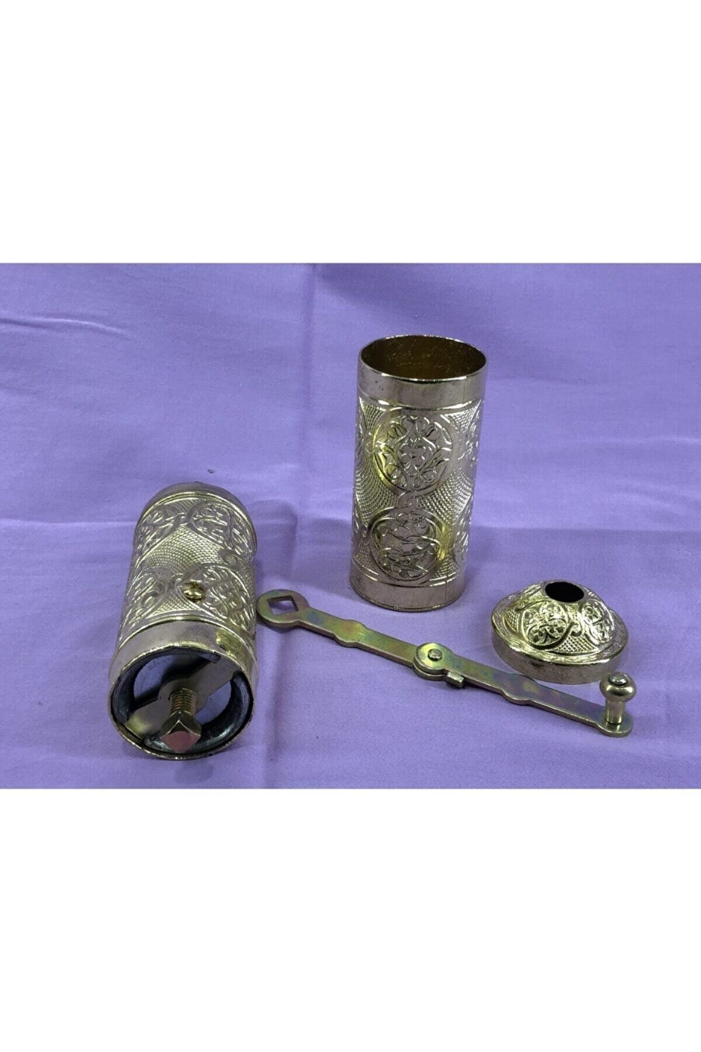 KARABİBER KAHVE KAYA TUZU DEĞİRMENİ UZUN OSMANLI TARZI DÖKÜM EL YAPIMI ÖĞÜTÜCÜ PARLAK SARI RENKLİ %100 ORJİNALDİR %100 YERLİ ÜRETİMDİR %100 EL YAPIMIDIR PİYASADAKİ SAHTE ÇİN MALI ÜRÜNLERDEN KESİNLİKLE DEĞİLDİR UZUN YILLAR SORUNUSUZCA KULLANABİLISİNİZ DEKOTATİF AMAÇLI KULLANABİLİRSİNİZ MASALARINIZA AYRI BİR RENK KATAR Osmanlı motiflli otantik dış yüzeyiyle ev, ofis yada iş yerinize ayrı bir hava katacaktır? İlk Kullanımda iç mekanizmanın temizlenmesi için pirinç kullanınız.. ; Bulaşık makinesinde yıkamanız tavsiye edilmez. ; El Yapımı, Tamamen el işçiliği ile yapılmıştır Tarihi Türk Osmanlı Değirmenleri ile yılların kalitesi 1. ; kalite ve Uzun ömürlü Yıllarca dayanabilen aksamlar Kararmaya karşı sirkeli suyla temizlendiğinde ilk günkü görüntüsüne kavuşacaktır. ; ÜRÜNÜN ÖZELLİKLERİ : ÜRÜNÜN CİNSİ : ZAMAK Ürün Ölçüleri : Toplam Uzunluk : 209mm / 8.25' Gövde Uzunluğu : 141mm / 5.55' Gövde Genişliği : 34mm / 1.34' Gövde Ağzı Genişliği : 31mm / 1.19' ÇeKme Kolu Uzunluğu : 138mm / 5.43' Alt Depo Uzunluğu : 87mm / 3.41' Alt Depo Genişliği : 46mm / 1.81' Toplam Ağırlık : 587 Gram / 20.7 Oz MEVCUT RENKLER : GÜMÜŞ, ANTIK BRASS (HAKİ), ANTIK COOPER Temizlerken Kesinlikle Çamaşır Suyu, Başka Bir Çözücü Gibi Kimyasal Ürünler Kullanmayınız. ; Kullanım Amacı Dışında (Tuz Karabiber Pirinc) Kullanmamaya Özen Gösteriniz.;