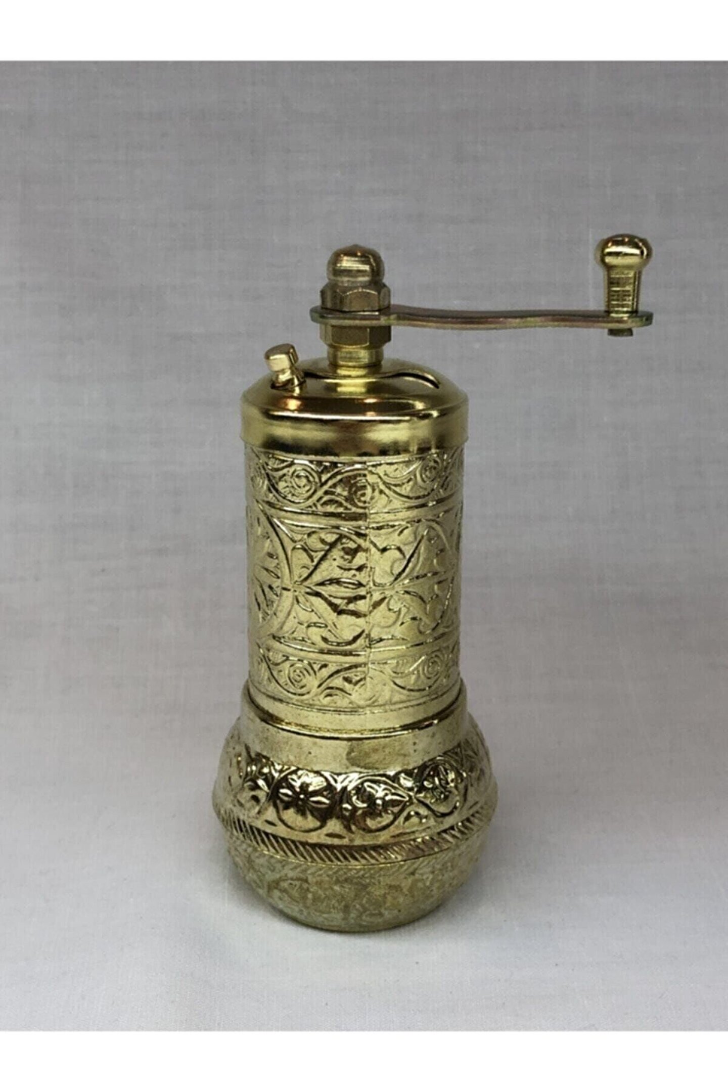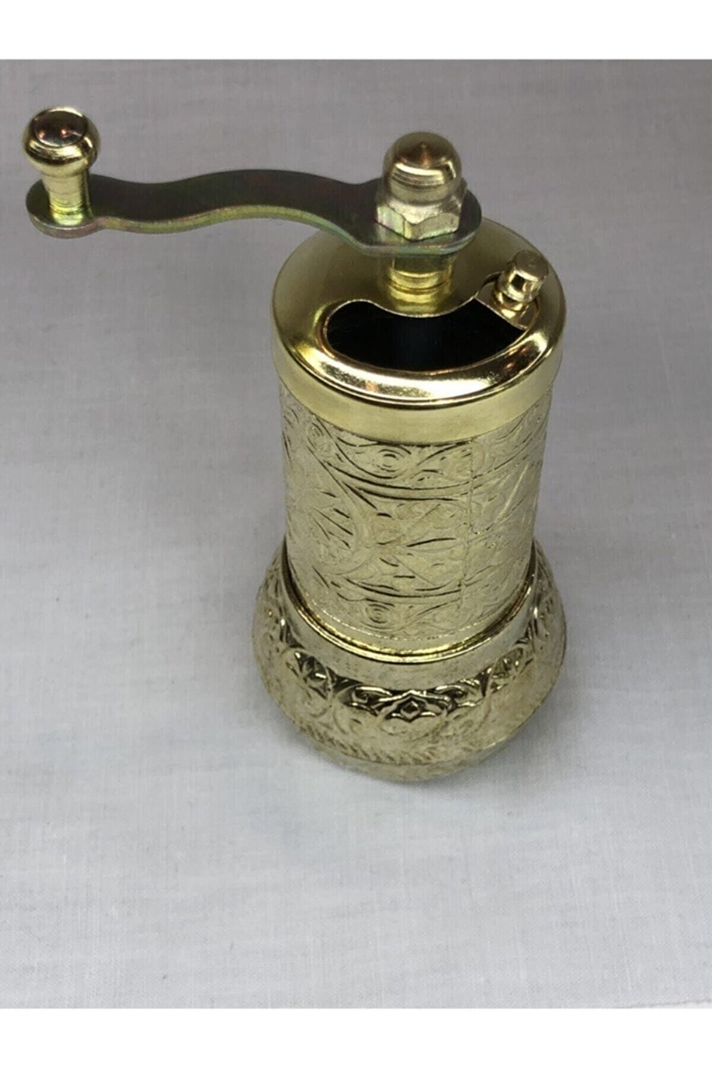 Axe Grinder Şık Parlak Sarı Renkli Osmanlı Motifli Otantik El Yapımı Karabiber Tuz Pirinç Değirmeni Mini Öğütücü
