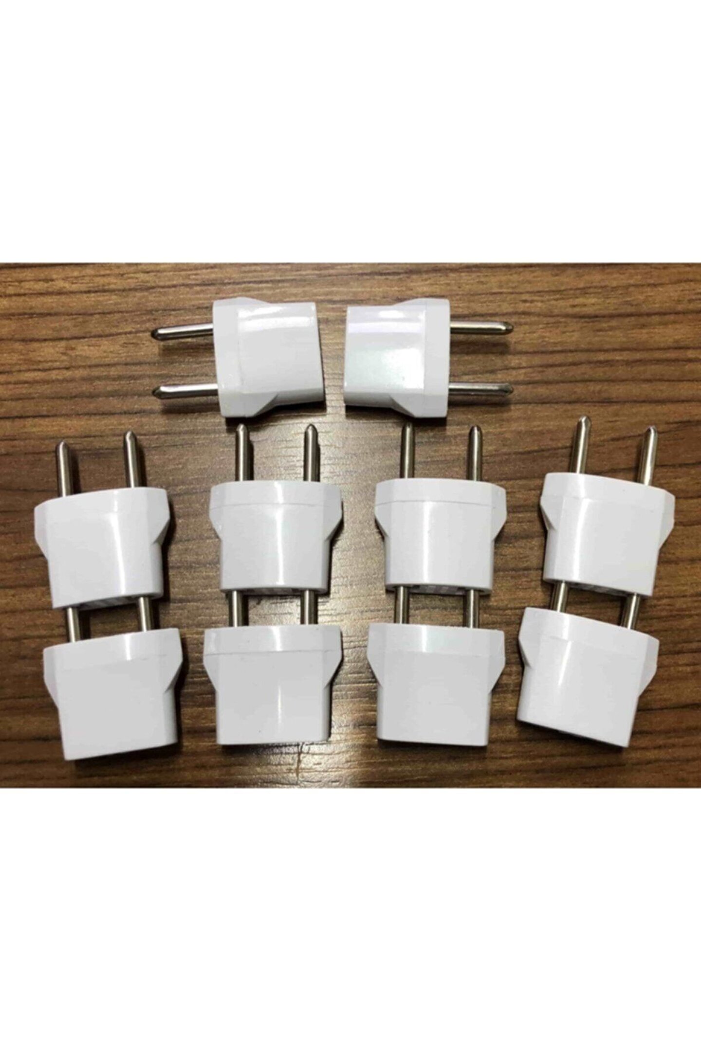 10 Adet Amerikan Uçlu Prizlerini Türk Uçlu Pirize Çevirici Dönüştürücü Beyaz Adaptör