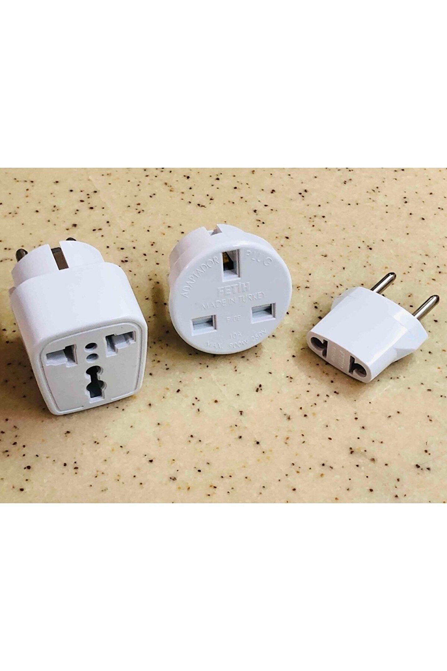3 Adet Birbirinden Farklı ABS Plastik Çevirici Elektrik Fiş Ucu ; 1. İngiliz Ucunu Türk Prizine Çeviren Beyaz Renkli Yuvarlak Topraklı Dönüştürücü ; 2. Amerikan + İngiliz Ucunu Türk Prizine Çeviren Beyaz Renkli Kare Tipi Dönüştürücü ; 3. Amerikan 2 Pinli Duz Elektrik Ucunu Türk Prizine Dönüştüren Küçük Beyaz Renk Çevirici ; Yurtdışındaki prizlere uygun ürünleri çalıştırma konusundaki problemi çözmek için Kullanılır ; 3 ADET RESİMDE GÖRÜLEN ÇEVİRİCİLER GÖNDERİLECEKTİR ;