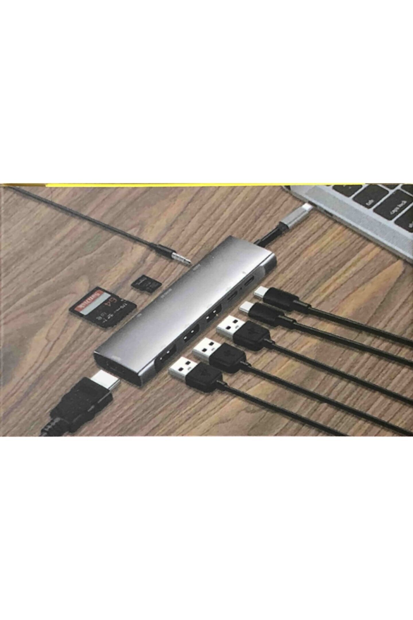 T9 Type; c Hub; Notebook & Macbook Usb; Type C Çoğaltıcı 9in1 Adaptör T9 Type; C Hub 2 adet 3; 0 USB çıkışı 1 adet 2; 0 USB çıkışı 2 adet HDMI çıkışı 4K; 30 Hz görüntü aktarım kalitesi Küçük ve taşıması kolay Hafıza kartı giriş yuvası 1 adet çok fonksiyonlu type; c çıkışı Alüminyum alaşım gövde Hızlı ve güvenli veri aktarımı 1 adet SD 1 adet micro SD hafıza kartı çıkışı 55 Gram 1; Çıkış : HDMI; HDTV 2; Çıkış : USB 3 3; Çıkış : USB C Female 4; Çıkış : USB C Female 5; Çıkış : USB C Male 6; Çıkış : SD; TF Card Reader 7; Çıkış : Audio 8; Çıkış : Micro SD 9; Çıkış : TYPE C + TYPE C;;