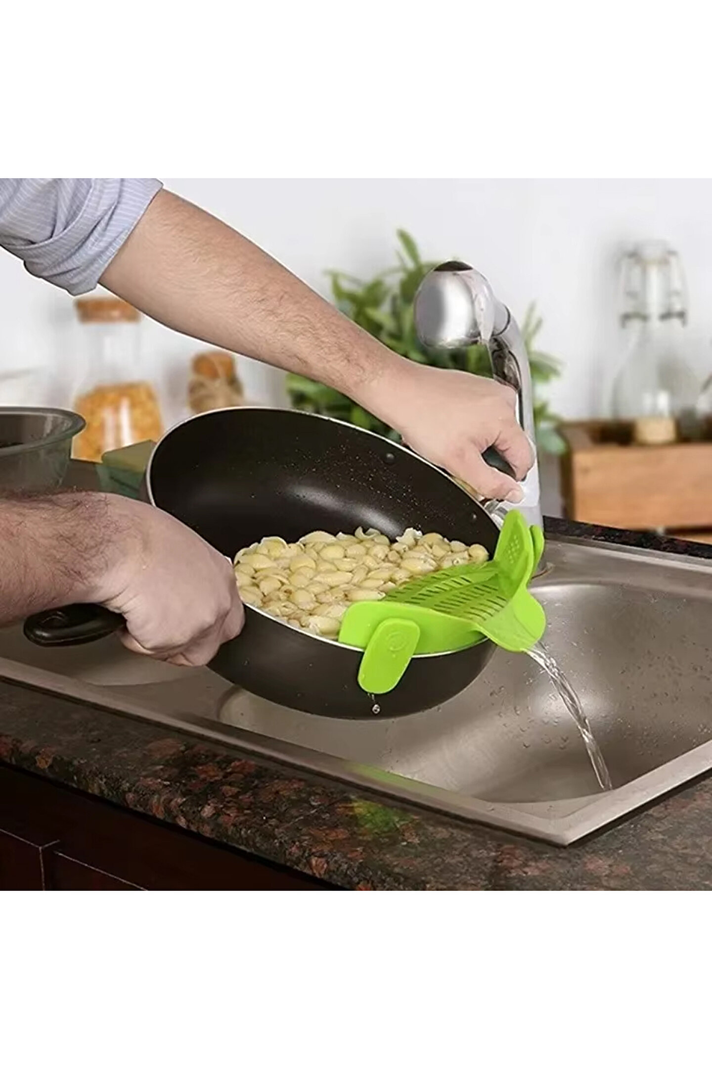 • Kolay Kullanım:  Tencereye klipslenen tasarımı ile güvenli ve hızlı süzme imkanı.