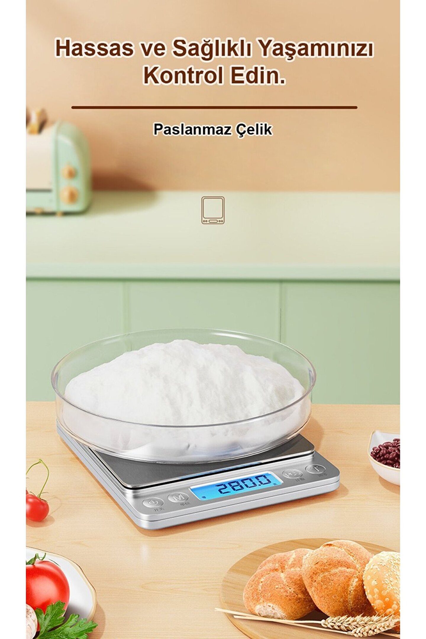 Teknik Özellikleri Tanım : Hassas Terazi Maksimum Kapasite :3KG. ; Tip : Dijital Büyük LCD ekran, net rakamlar Derece Işareti : 0.01 Gr. ; Hassas gerilim ölçüm sensörü ile donatılmış Yüksüz ağırlık fonksiyonu (dara alma fonksiyonu) Dokunmatik tekno tuş Otomatik sıfırlama ve kapatma Ağırlık Birimi Değiştirme: g, kg, lb, Oz, ml Malzeme: Paslanmaz çelik, ABS Güç kaynağı: 2 x AAA pil Düşük pil ve aşırı yük göstergesi Taşınabilir, Ergonomik tasarım CE Belgeli Kutu İçeriği 1 Adet Powermaster 500 Gr. ; Dijital Hassas Terazi 0.01 Gr. ; PM-14635 2 Adet AAA pil 2 Adet ölçü Kabı 1 Adet Kullanma Kılavuzu;