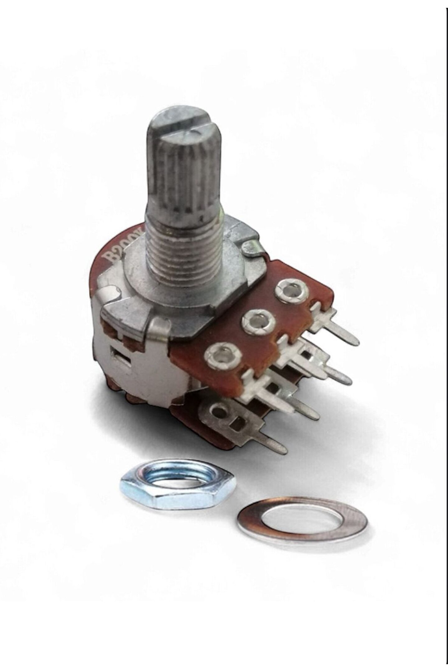 Potansiyometreler, devrelerde direnç değerini ayarlamak veya kontrol etmek için kullanılır.; Bu belirli potansiyometre, 220 kilo-ohm'luk bir direnç değeri sunar ve bir ayar yapmak istediğinizde kullanılır.; Mono yapısı, tek bir ayar noktasına sahip olduğunu gösterir, bu da tek bir devre parametresini ayarlamak için kullanıldığını gösterir.; Potansiyometreler genellikle ses ekipmanları, amplifikatörler, ışık kontrol devreleri ve diğer elektronik uygulamalarda kullanılır.