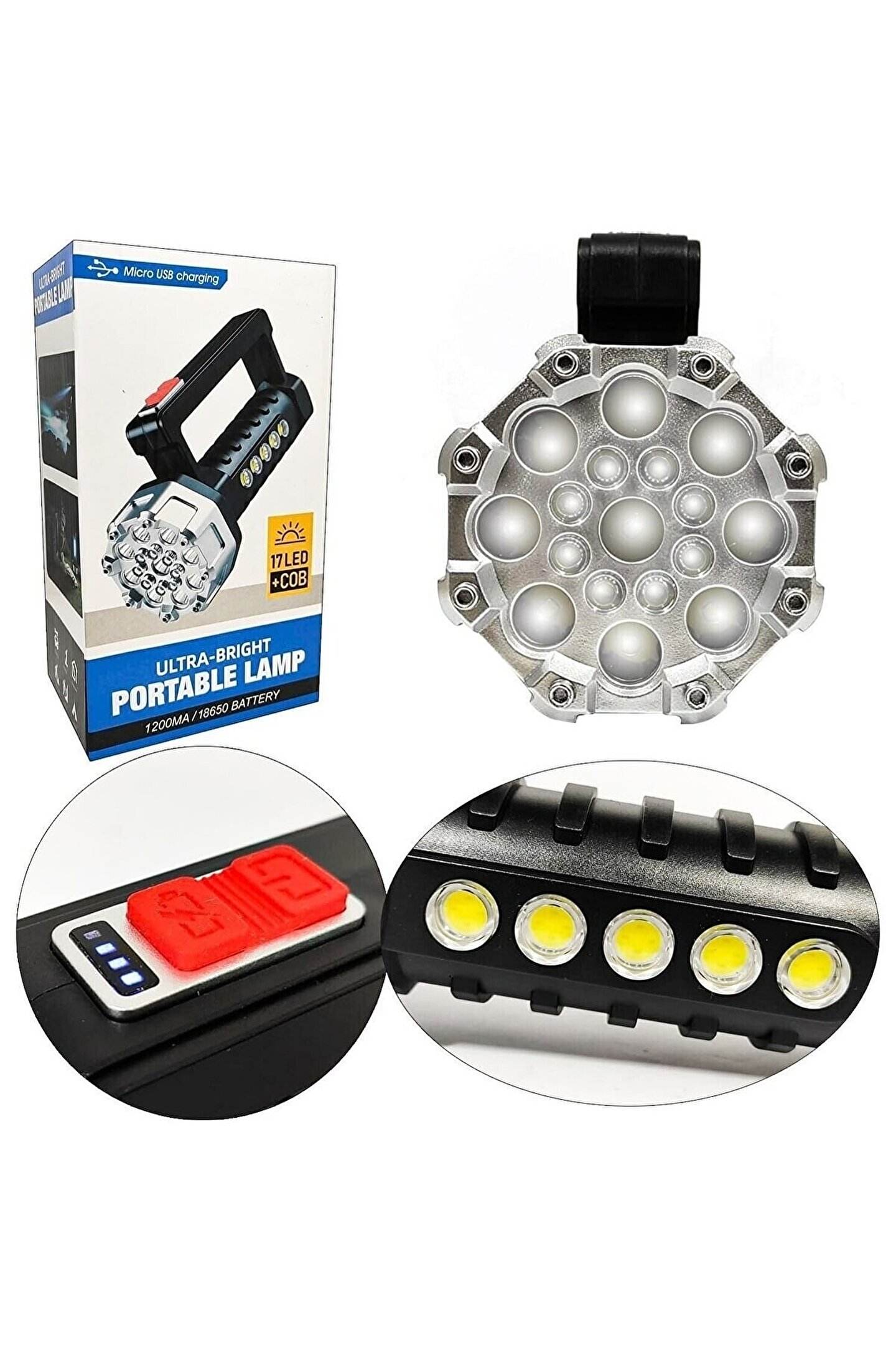 Kampçılar İçin Uyumlu El Feneri Uzun Süreli Kullanım Gelişmiş teknolojiyle donatılmış süper parlak şarjlı el fenerimiz, aydınlatma konusunda size mükemmel bir çözüm sunar. ; Sıradan el fenerlerinden çok daha fazlasını sunan bu ürün, taşınabilirliği, yüksek performansı ve uzun pil ömrüyle öne çıkıyor. ; Artık karanlıkta kalmayacak, her anınızı net ve güvenli bir şekilde aydınlatacaksınız. ; Ana Özellikler: 1. ; Sınıf Aydınlatma: İçerisinde yer alan 17 adet LED ışık kaynağı sayesinde etkileyici bir ışık gücüne sahiptir. ; Hem günlük kullanımda hem de acil durumlarda size mükemmel aydınlatma sağlar. ; 10 Saatlik Uzun Pil Ömrü: Şarj edilebilir 1200mAh pil kapasitesi, el fenerinin uzun süre kesintisiz aydınlatma sağlamasına imkan tanır. ; Bu özellik, outdoor etkinliklerde, kamp yaparken, gece yürüyüşlerinde ve acil durumlarda büyük bir avantaj sunar. ; Kompakt ve Taşınabilir: Hafif ve ergonomik tasarımı sayesinde el feneri, her türlü ortamda kolayca taşınabilir. ; Suya dayanıklı yapısı sayesinde açık hava etkinliklerinde ve yağmurlu havalarda güvenle kullanabilirsiniz. ; Çok Amaçlı Kullanım: El fenerimizin çeşitli aydınlatma modları, farklı ihtiyaçlara uygun çözümler sunar. ; Odaklanabilir lens özelliği sayesinde geniş alanları aydınlatmak veya uzak noktalara odaklanmak mümkündür. ; Dayanıklılık: Sağlam malzeme kalitesi, ürünün uzun ömürlü ve dayanıklı olmasını sağlar. ; Sık kullanıma ve zorlu koşullara karşı dayanıklılığı sayesinde size uzun yıllar boyunca eşlik edecektir. ; Bu şarjlı el feneri, kampçılardan doğa gezginlerine, acil durum ekiplerinden ev kullanıcılarına kadar herkesin beklentilerini fazlasıyla karşılamak için tasarlandı. ; Gece maceralarınızı ve acil durumlarınızı aydınlatmak için güvenilir bir seçenek sunuyor. ; Daha güvenli, daha aydınlık ve daha keyifli bir deneyim için bu süper parlak şarjlı el fenerine hemen sahip olun! Unutmayın, geleceğe ışık tutan bu ürün sadece bir tık uzağınızda!;