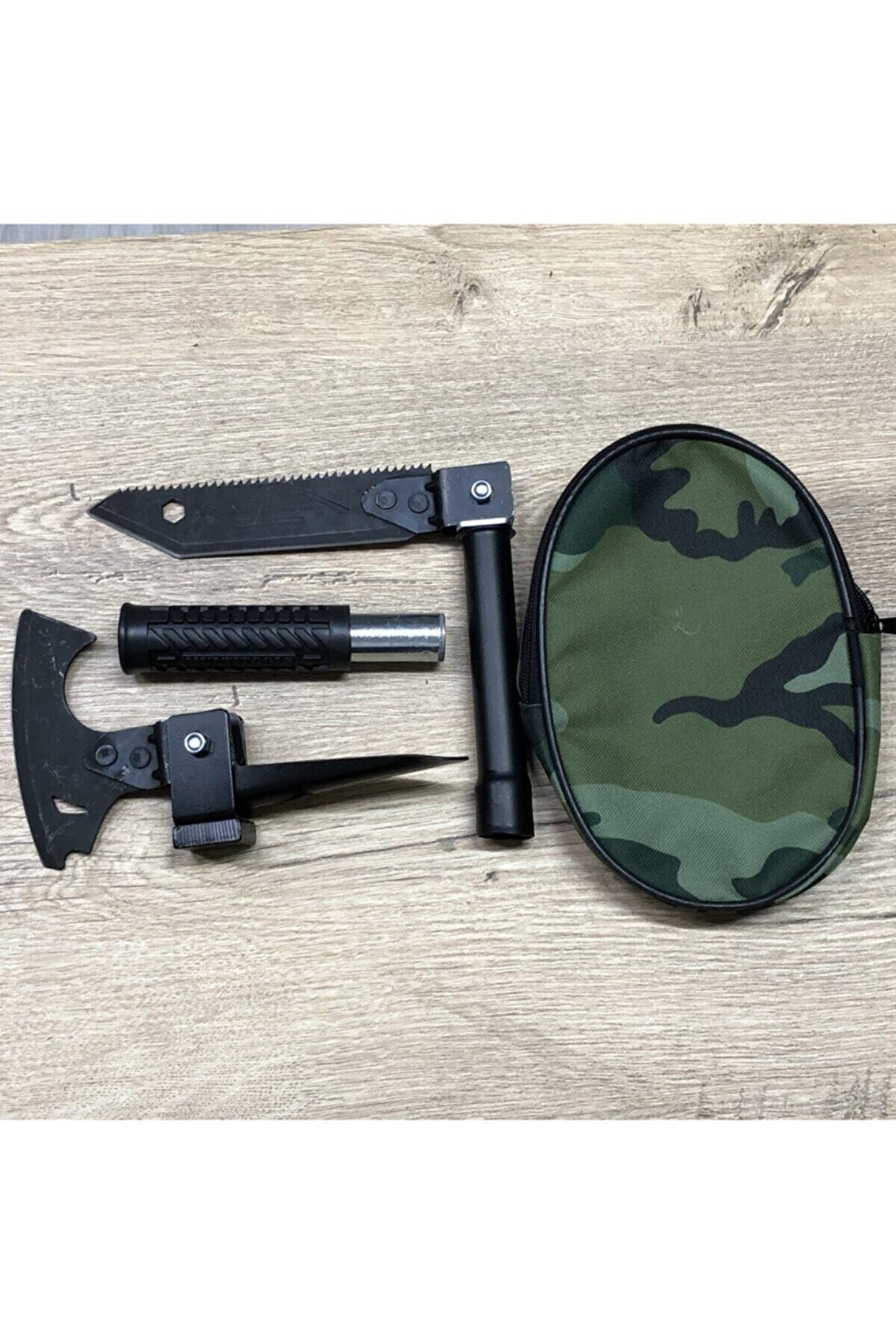 Süper Pratik Sökülüp Katlanan Minik Askeri Çelik Balta Çekiç Çapa Bıçak Testere Seti