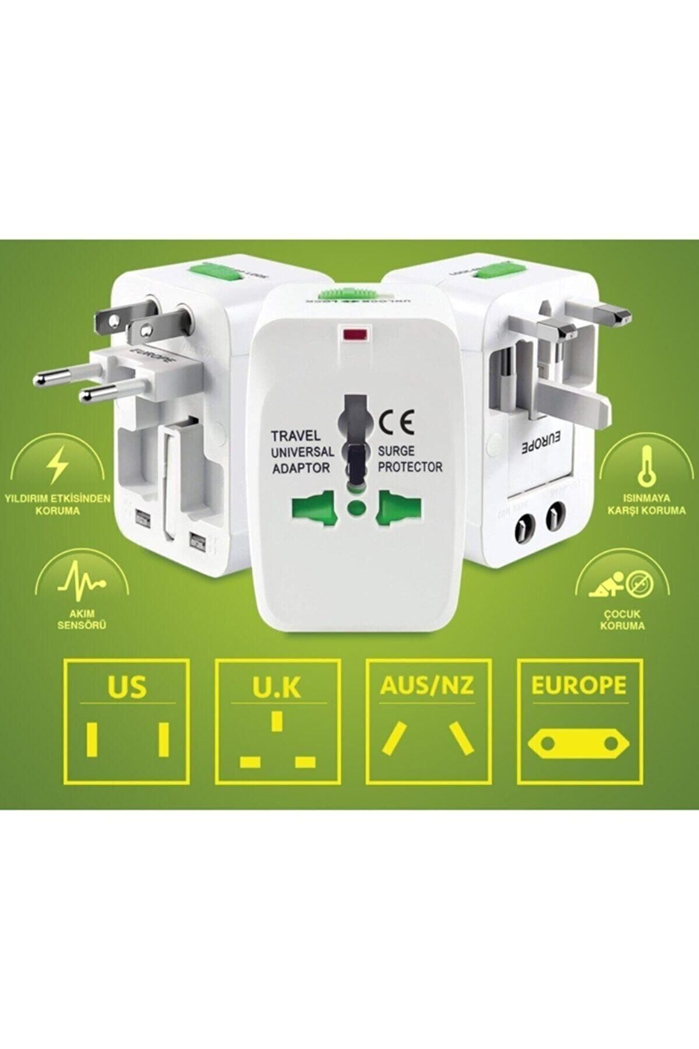 • Universal Çoklu Priz Çevirici Seyahat Adaptörü