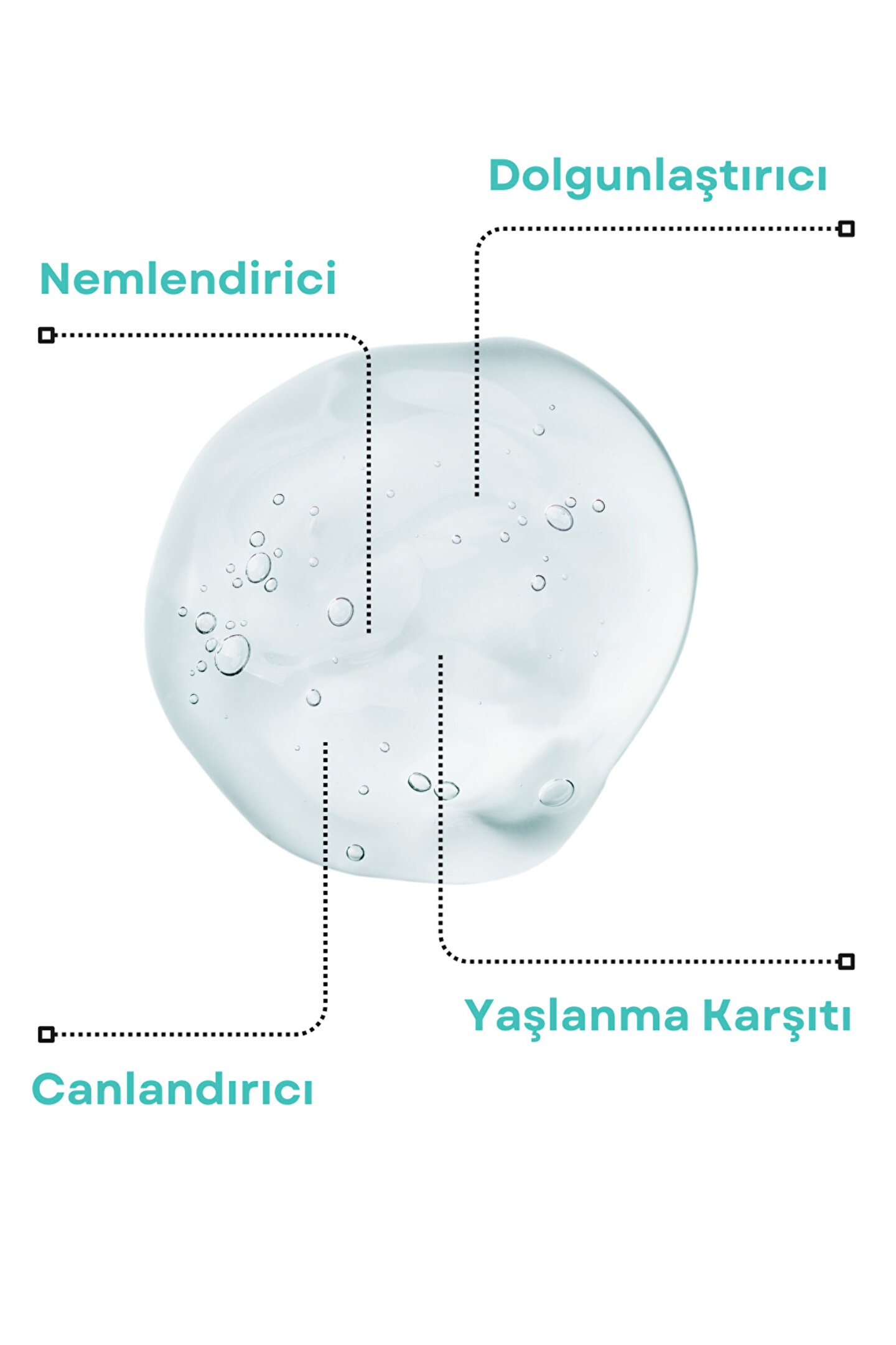 - Hyaluronic acid serum , cilt tarafından hızlıca emilirken derinlemesine nemlendirir.