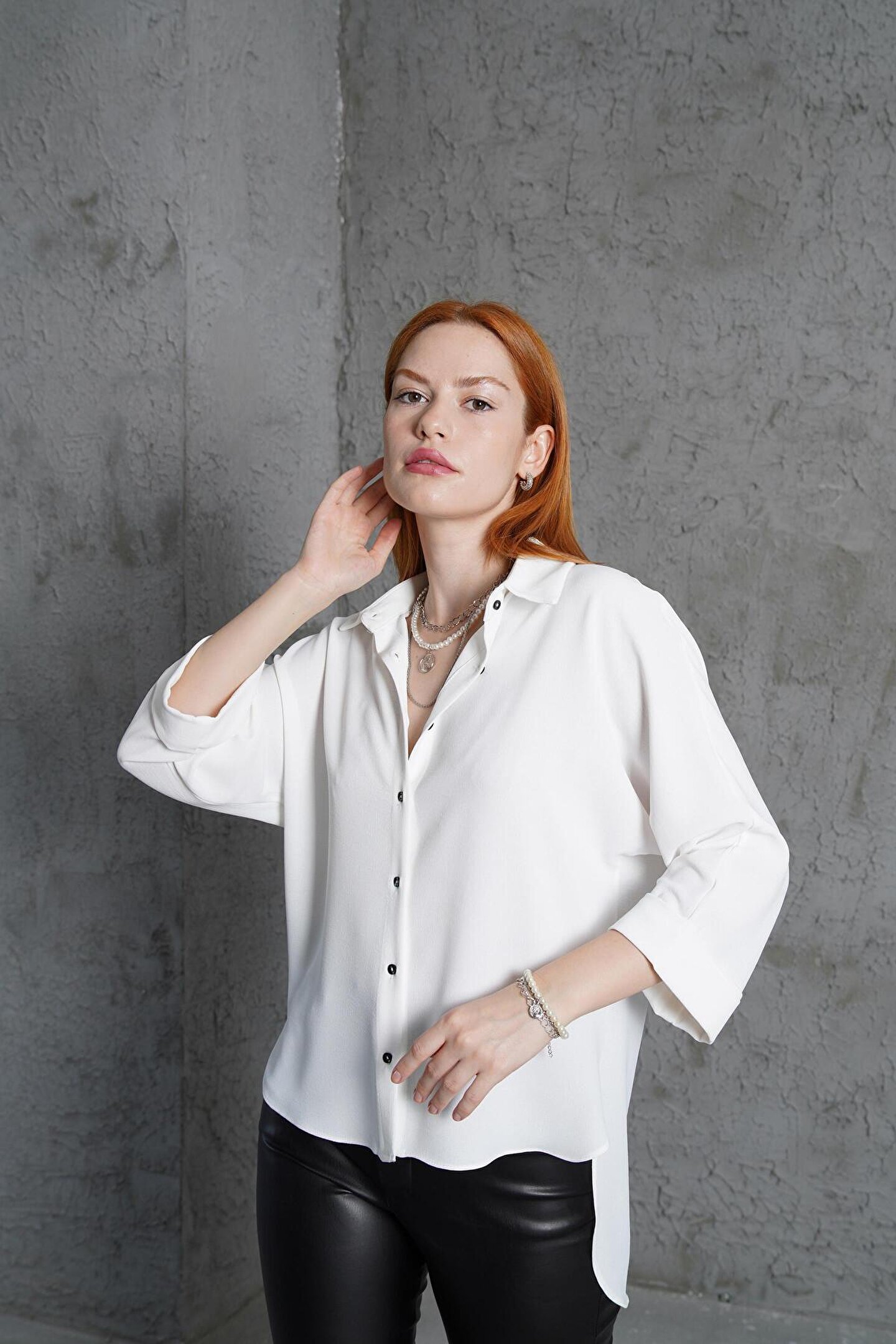 Aydoganticaret44 Yarasa Kol Rahat Kalıp Beyaz Gömlek