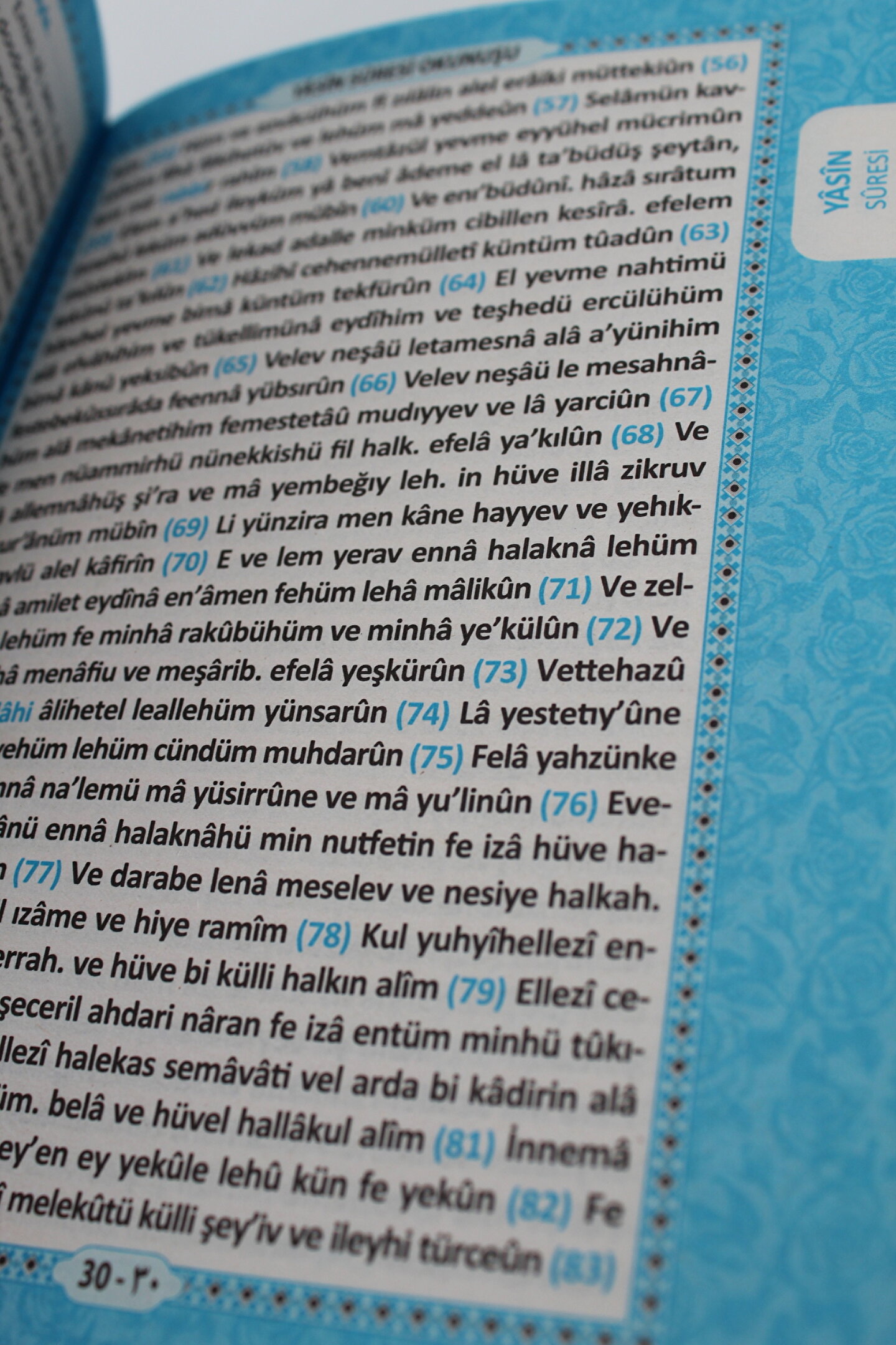 10 Adet Yasini Şerif Açıklamalı ve Mealli Çanta Boy ; Ürün Özellikleri ; Boyut: 12x16cm ; 2. Hamur Kağıt ; Karton Kapak ; 80 Sayfa ; 2 Renk Baskı ; Dünyanın en kolay okunan Bilgisayar Hattı ile hazırlandı, seçilen yazı hem estetik hem de harflerin temel karakterlerini koruyan ve kolay okunmalarını sağlayan özel bir hattır. Harekeler ait oldukları harflerin hemen altında ya da üstünde sıralanmış, özellikle okumaya yeni başlayanlar hareke karışıklıklarına meydan vermeyecek şekilde düzenlenmiştir. ;