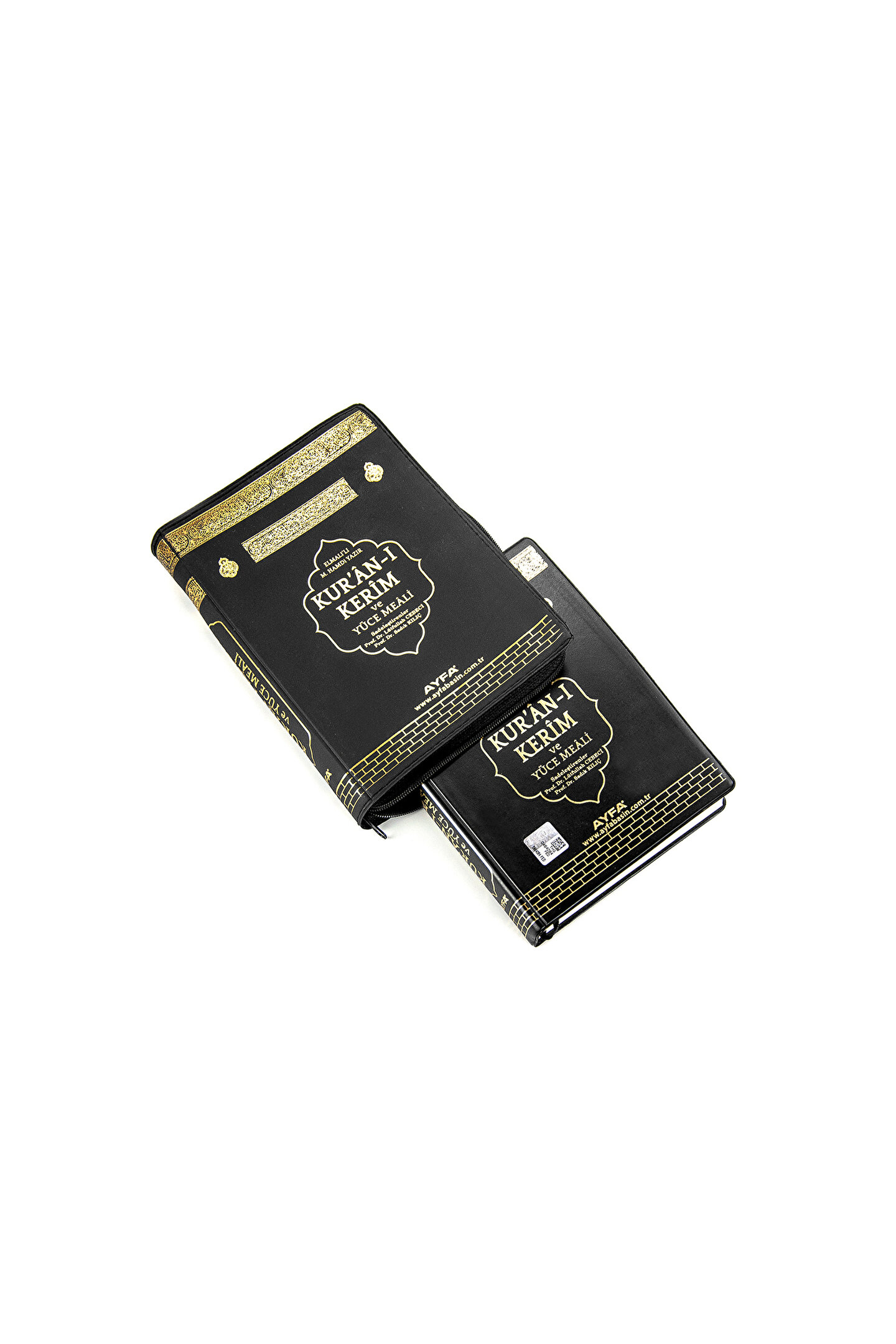Kabeli Çanta Boy Fermuarlı Mealli Kuranı Kerim Ürün Özellikleri : Ürün Kodu 063 Kabe; Bilgisayar Hatlı Milyonlarca insanın Kur'ân-ı Kerim okumasını öğrendiği hattan.; Okuması çok kolay bilgisayar hatlı.; Diyanet Mühürlü Diyanet İşleri Başkanlığı Mushafları İnceleme ve Kıraat Kurulu'ndan Onaylı ve Mühürlü.; QR Kod Teknolojisi Yok; Renk Siyah; Ağırlık 0,4 gram; Baskı Rengi 2 Renk; Boy Çanta Boy (12 cm * 16 cm); Kapak Deri (Fermuar Cilt); İç Kağıt Şamua Kağıt; Sayfa 616 Sayfa; Mealli; Not : Bu Kur'ân-ı Kerim Hafız Osman Hattına sâdık kalınarak Sayfa Tutar, Berkenar, Secavendli, Med'li ve Kasır'lı olarak hazırlanmıştır Özel Suni Deri Fermuarlı Çanta