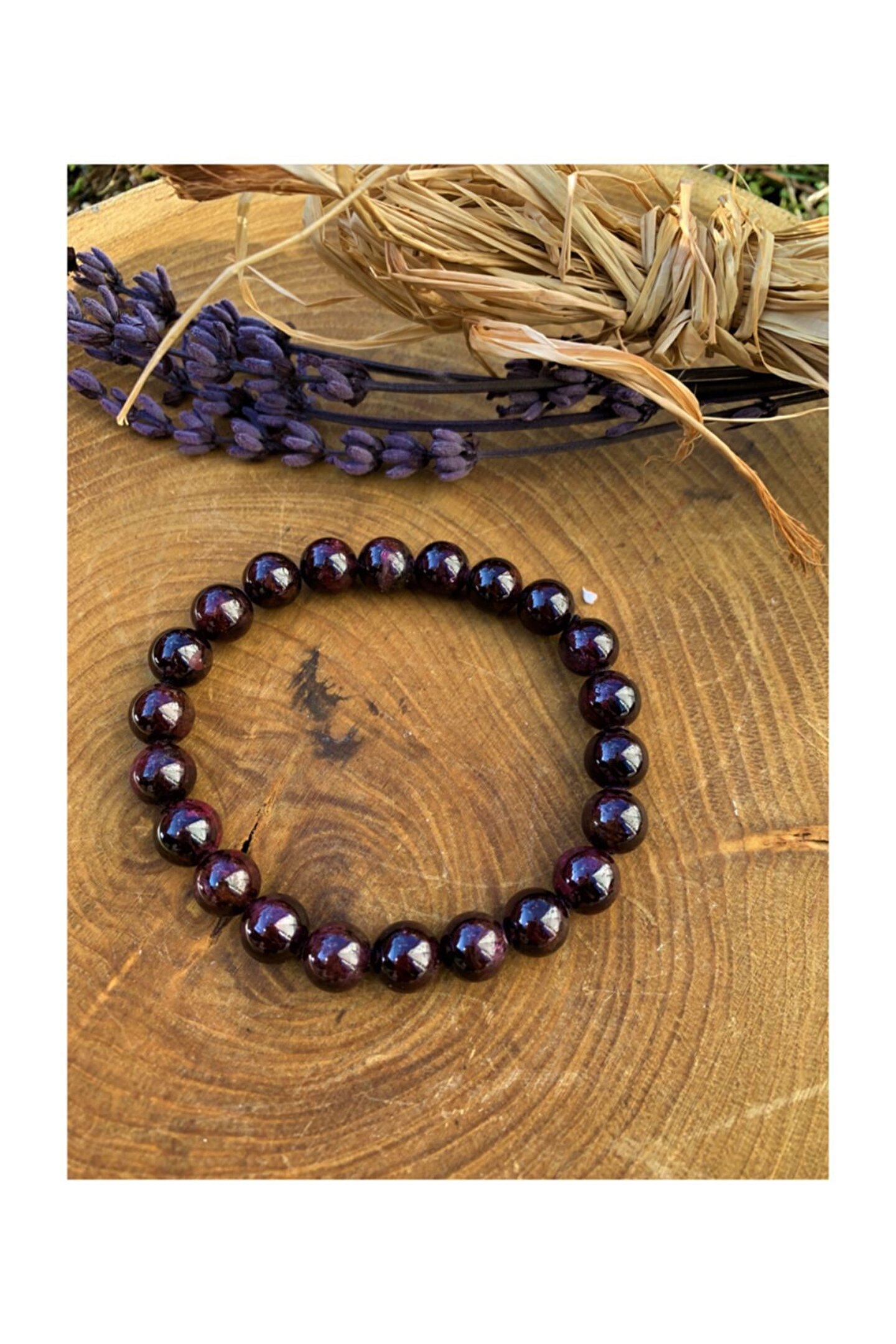 - Doğal taş kullanımı sayesinde her bileklik benzersiz ve otantik bir görünüm sunar; - Taş cinsi olarak garnet taşı, bilekliğe zarif bir parlaklık ve estetik bir dokunuş katar; - Kaliteli malzemeler kullanılarak üretilmiş olup, uzun süreli kullanım için idealdir;
