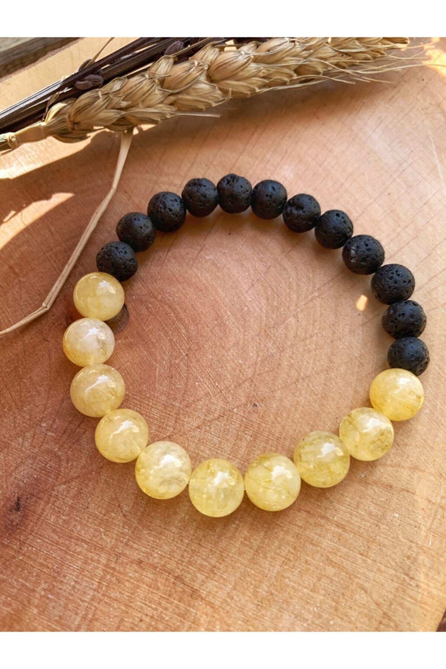 Dogal Taş Bileklik Zihin Duruluğu Kristal Kuvars ve Sitrin Birlikteliği 6mm AA Kaliteli Kristal