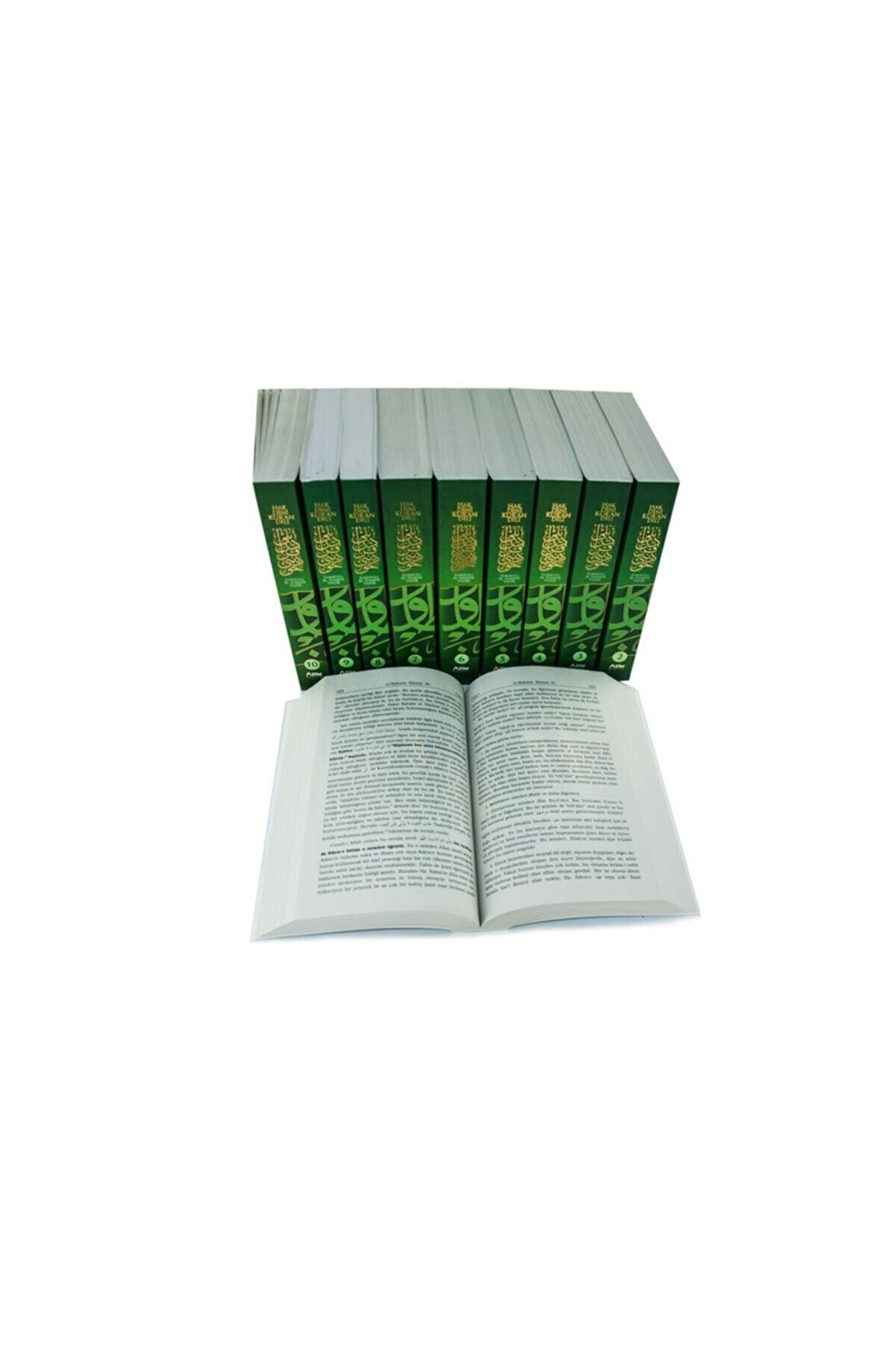 Osmanlı ulemasının en önemli şahsiyetlerinden biri olan elmalılı muhammed hamdi yazır, ömrünü islam dinine adamış; üstün yetenekleri, muhakeme gücü, dehâ çapındaki zekâsı, ilmi ve kültürüyle ün salmış büyük din alimidir.; Süleymaniye medresesi müderrisliği vazifesinde de bulunan elmalılı hamdi yazır, ilmi hizmetleri sebebiyle, osmanlı nişanı ile ödüllendirilmiştir.; Muhammed hamdi, 1926'da yazımına başladığı, sabırla ve itinayla sürdürdüğü hak dini kuran dili adlı tefsirini, on iki yıllık uzun ve zorlu çalışmanın ardından, 1938'de tamamladı.; Milletimizin kur'an-I kerim'i daha iyi anlayabilmesi amacıyla yazılan bu eser, ilim çevrelerinin güven ve takdirini kazanan önemli tefsirlerdendir.; 10 cilt hadis, ayet ve tefsirlerden alıntılar tamamen tahricli.; Rical, alfabetik fihrist ve lügatçe ilaveli.; Türkiye'de benzeri bulunmayan bu şaheser, artık günümüz türkçesinde insanlığı karanlıktan çıkaracak ilahi mesaj, elmalı m.; Hamdi yazır'ın kuran tefsiri ile sizleri aydınlığa çağırıyor cumhuriyet döneminin en büyük tefsir çalışmalarından biri olması prof.; Dr.; Ismail karaçam, yrd.; Doç.; Dr emin ışık, dr.; Nusrettin bolelli ve abdullah yücel tarafından yapılan bu sadeleştirmenin halen aşılamamış olması bu esere ayrı bir önem kazandırmaktadır.