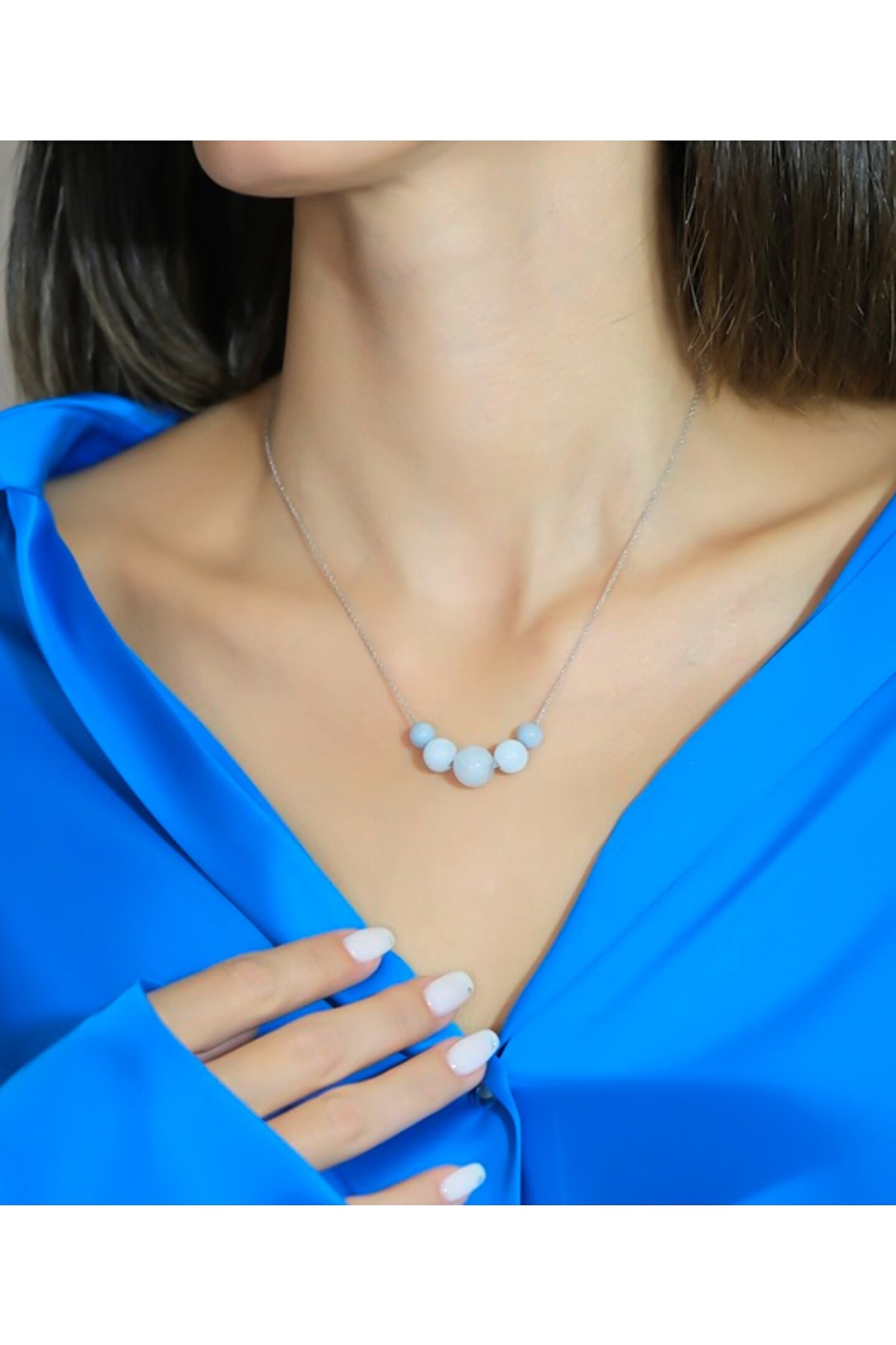 Dogal Taşlı 925 Ayar Gümüş Kolye Akik Doğal Taş 2mm