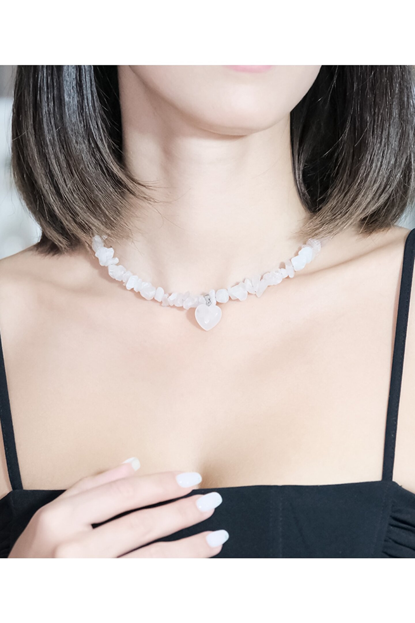 925 Ayar Pembe Kuvars Kırık Doğal Taş Kalp Gümüş Kolye