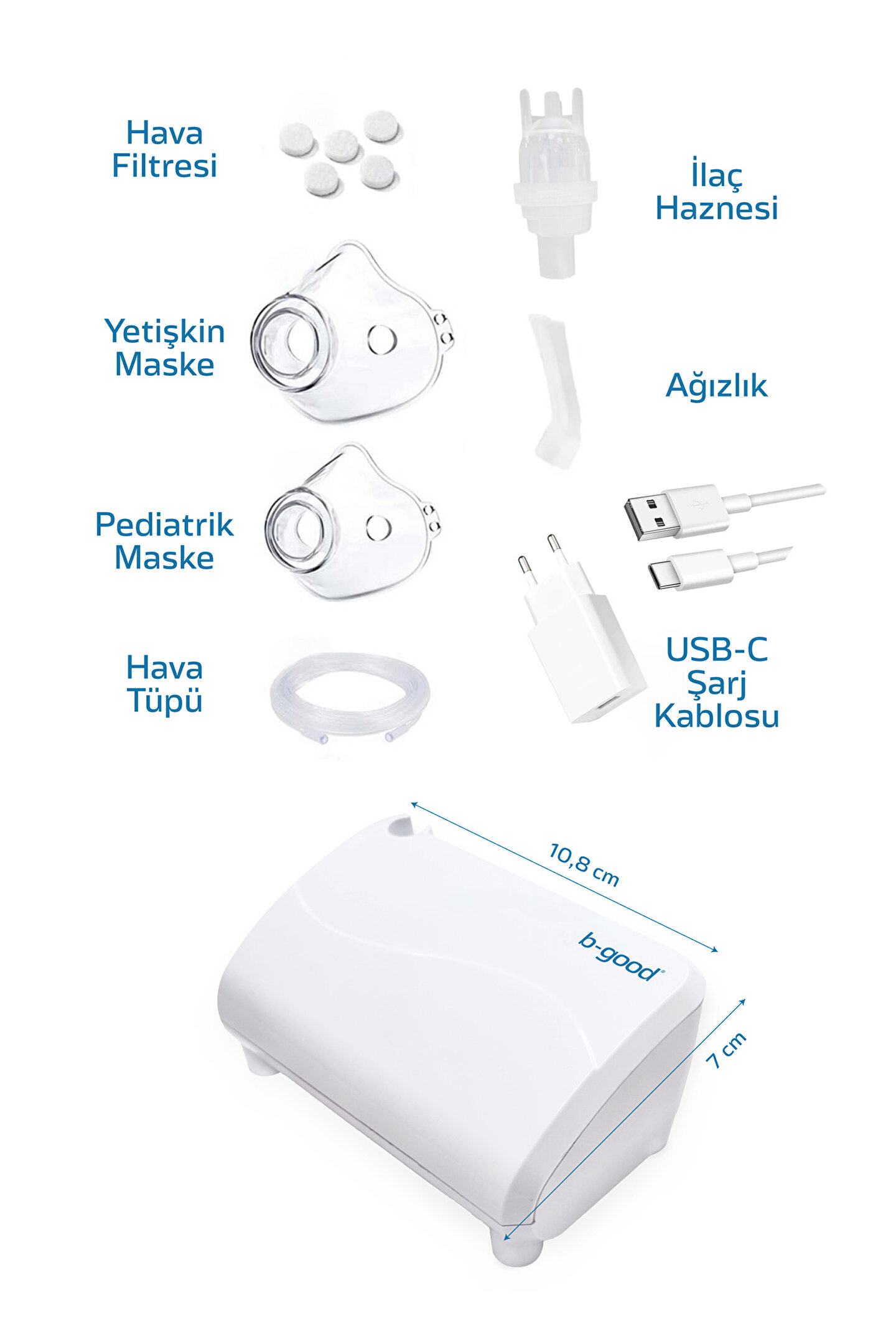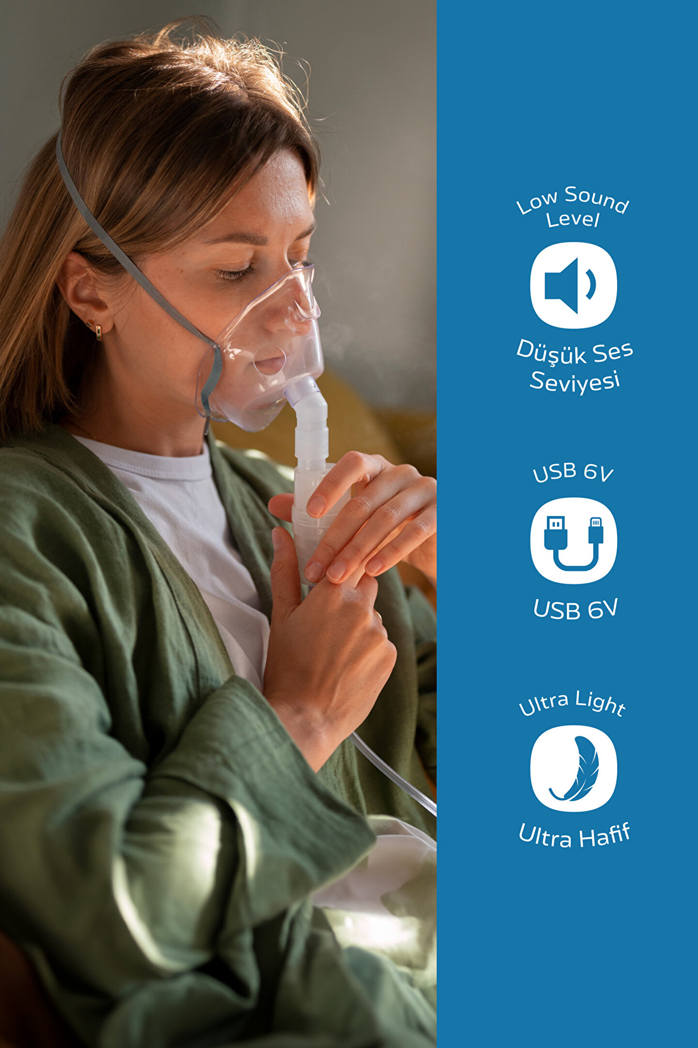 Ürün Açıklaması:; İlaçları buharlaştırarak, akciğerlere solunan bir sis şeklinde uygulamak amacı ile kullanılır; Nebulizatörler astım, ve diğer solunum yolu hastalıklarının tedavisinde yaygın olarak kullanılmaktadır; Kullanım Şekli:; Cihazı güç kaynağına takın; Cihaz ile ilaç haznesi arasındaki bağlantıyı sağlamak için hava tüpünün uçlarından birini cihaza bir diğerini ilaç haznesine takın; İlaç haznesine sıvıyı boşaltın ve haznenin kapağını kapatın; Cihaza yüz maskesi ya da ağızlığı takın; Power tuşuna basarak cihazı çalıştırın; İlaç bittikten sonra cihazı kapatmak için tekrar Power tuşuna basın; ;;