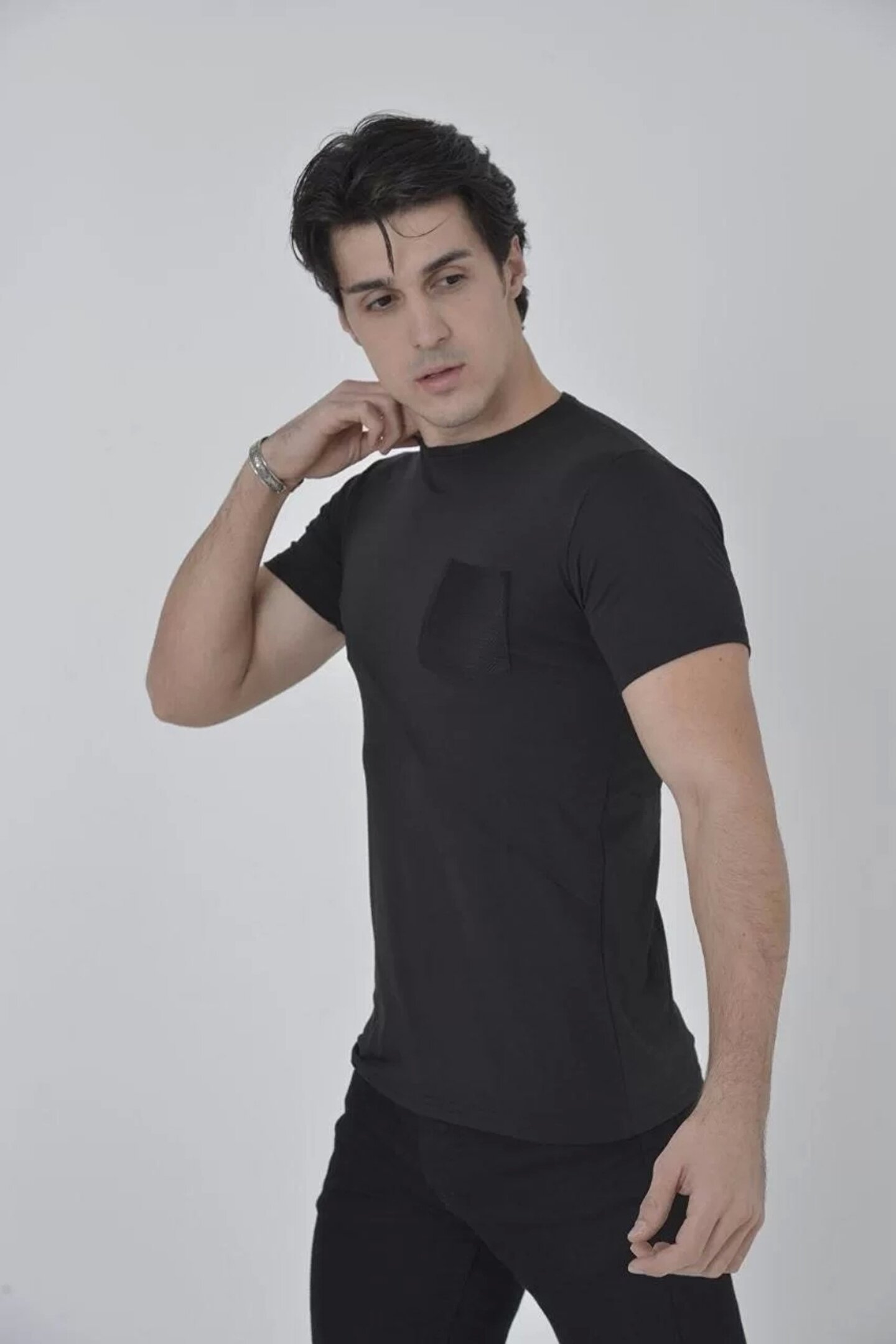 babatr.com Erkek File Cepli Slim fit T-shirt - Siyah