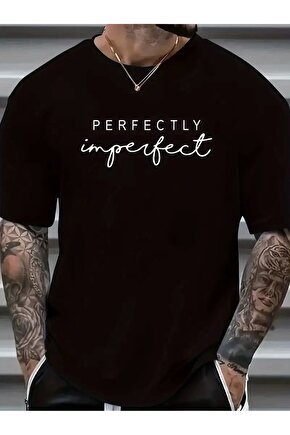 babatr.com erkekler için Ön Arka Baskılı PERFECTLY günlük Kısa Kol tişört - Siyah