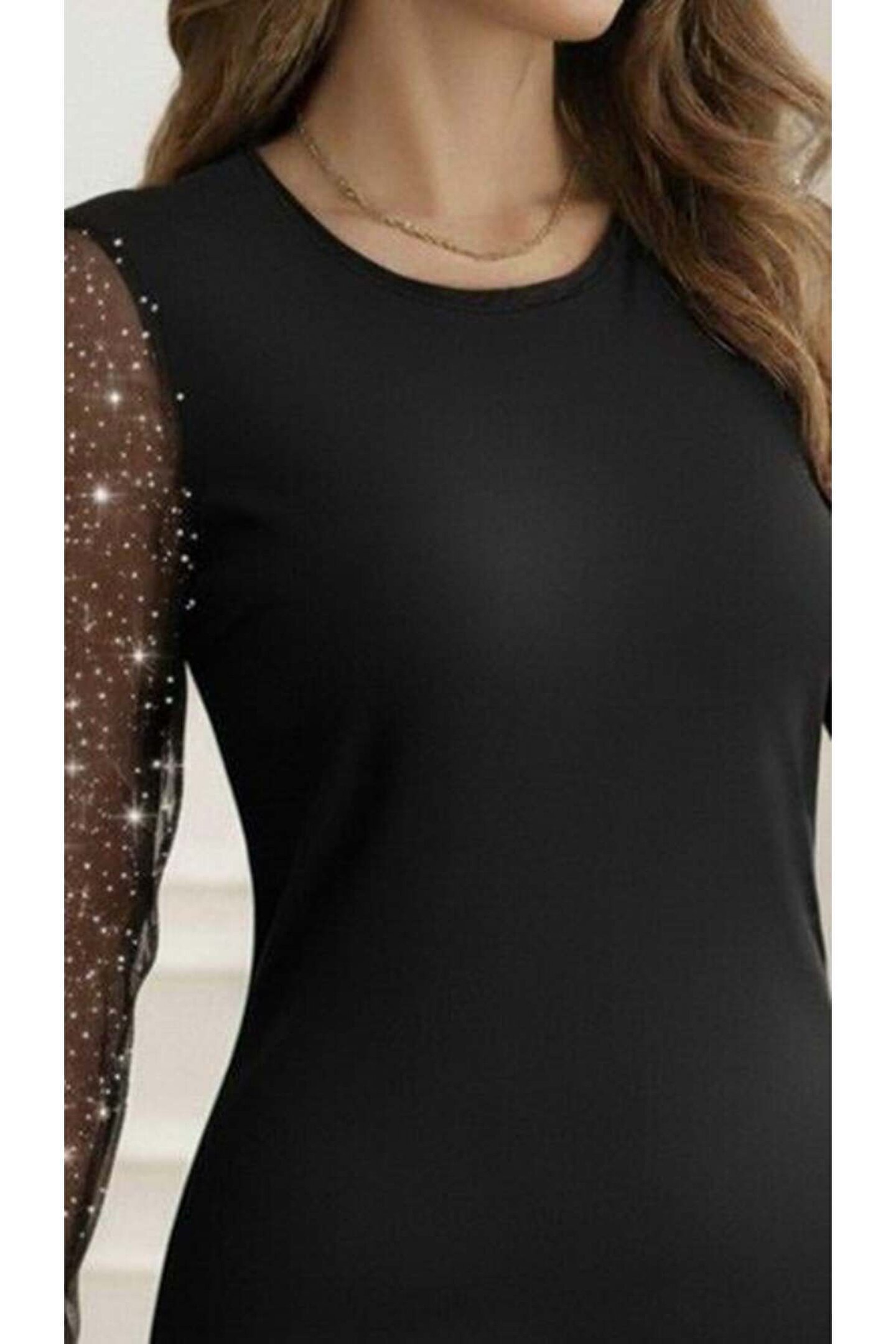 babatr.com Kadın Bisiklet Yaka Kol Tül Detay Dalgıç Mini Boy Elbise