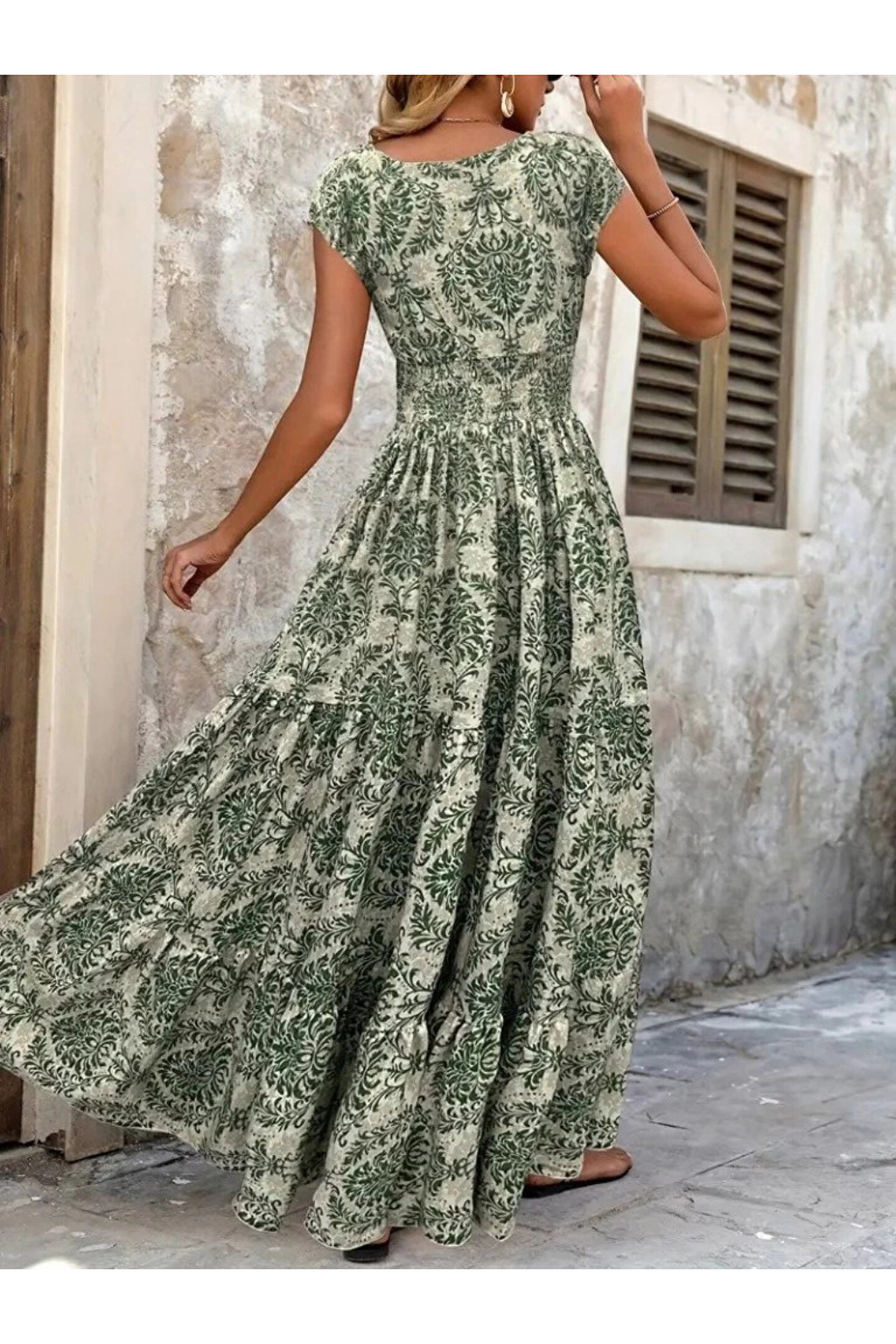 babatr.com Kadın Kısa Kollu Kruvaze Yaka Beli Lastikli Süprem