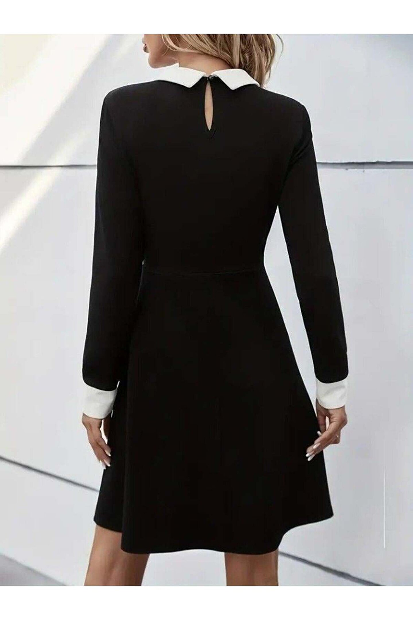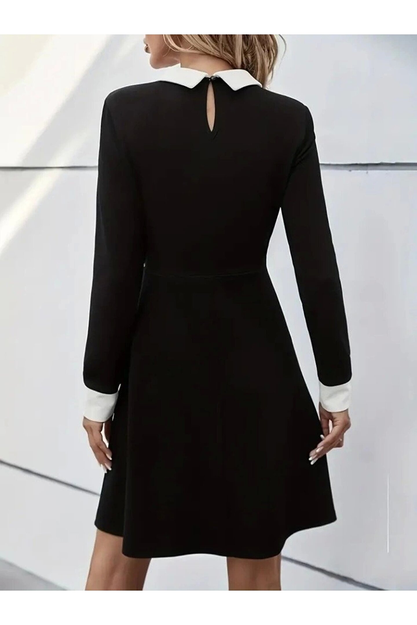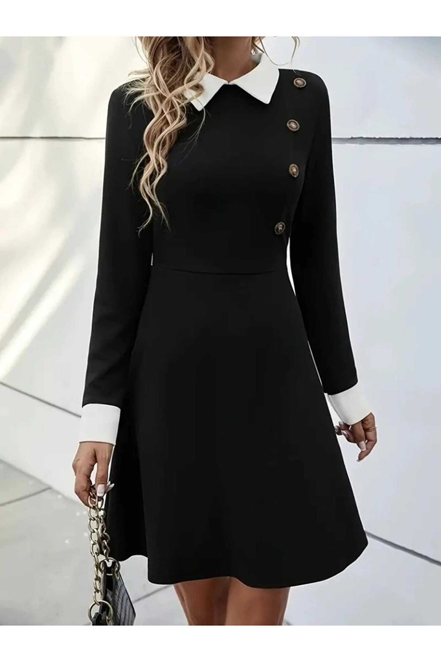 babatr.com Kadın Uzun Kollu Yakalı Düğmeli Kısa Modal Mini Elbise