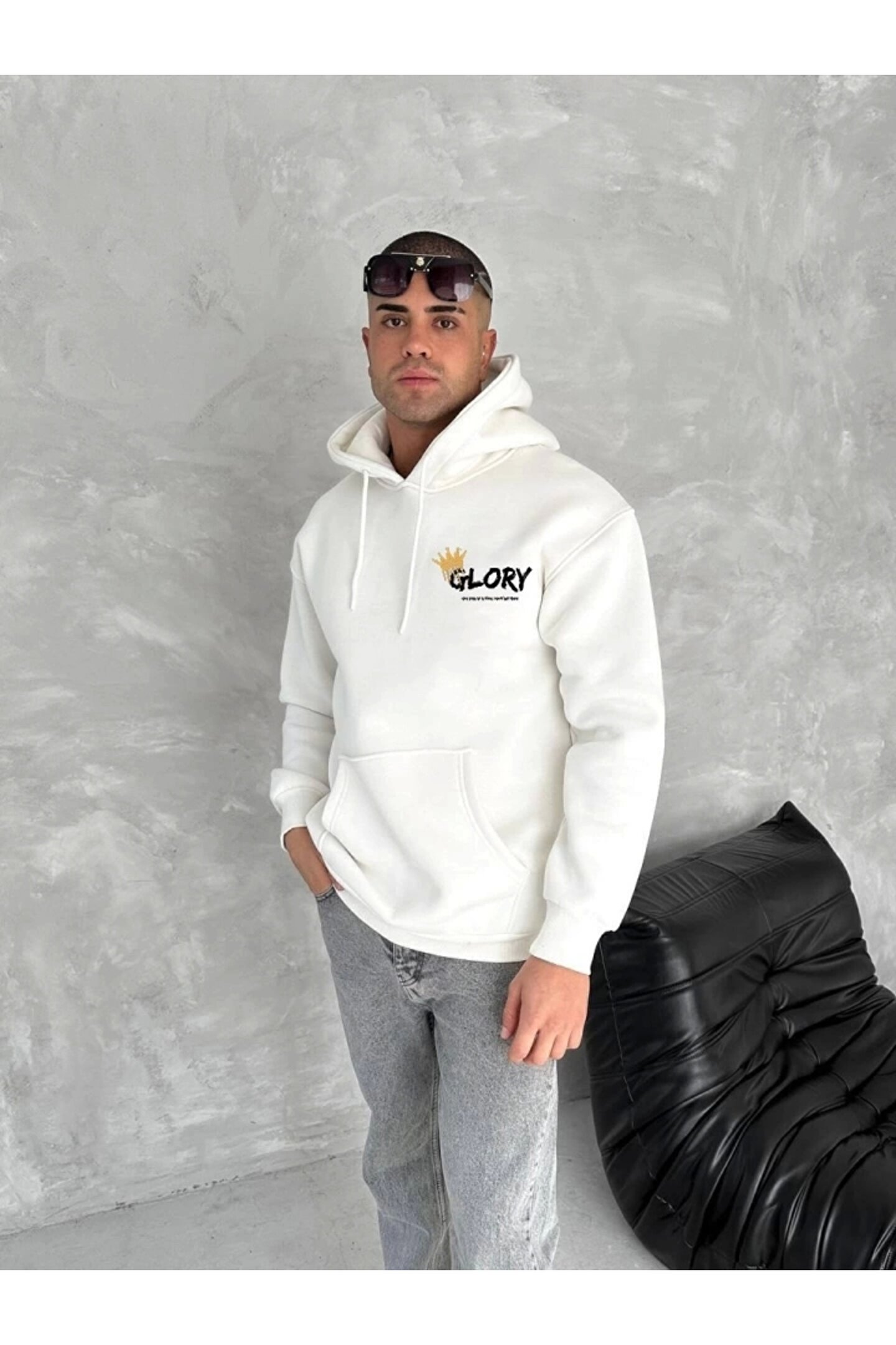 babatr.com Kışlık Üç İplik Kapşonlu SweatShirt - Beyaz