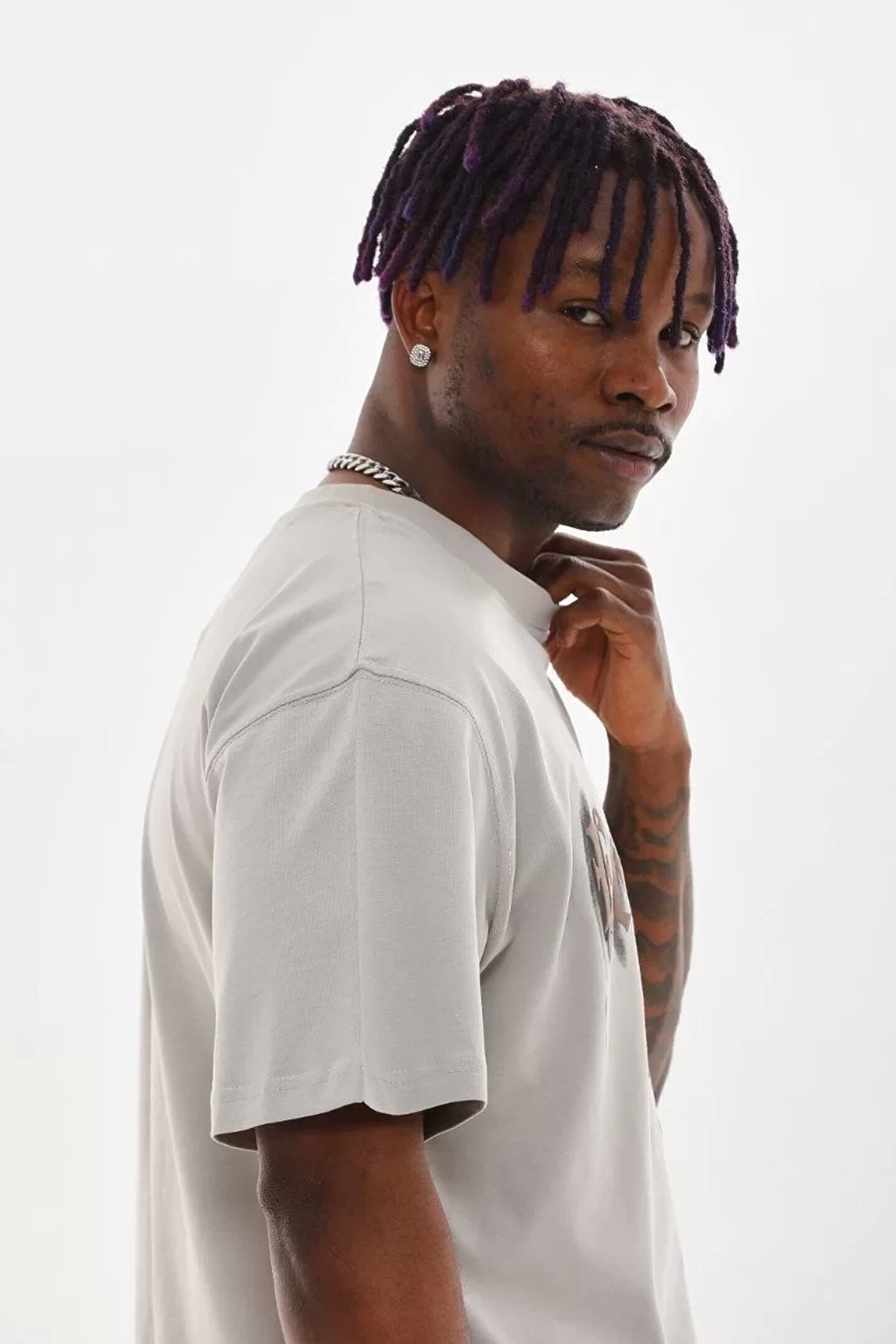 babatr.com Unisex Baskılı Oversize T-Shirt - Gri