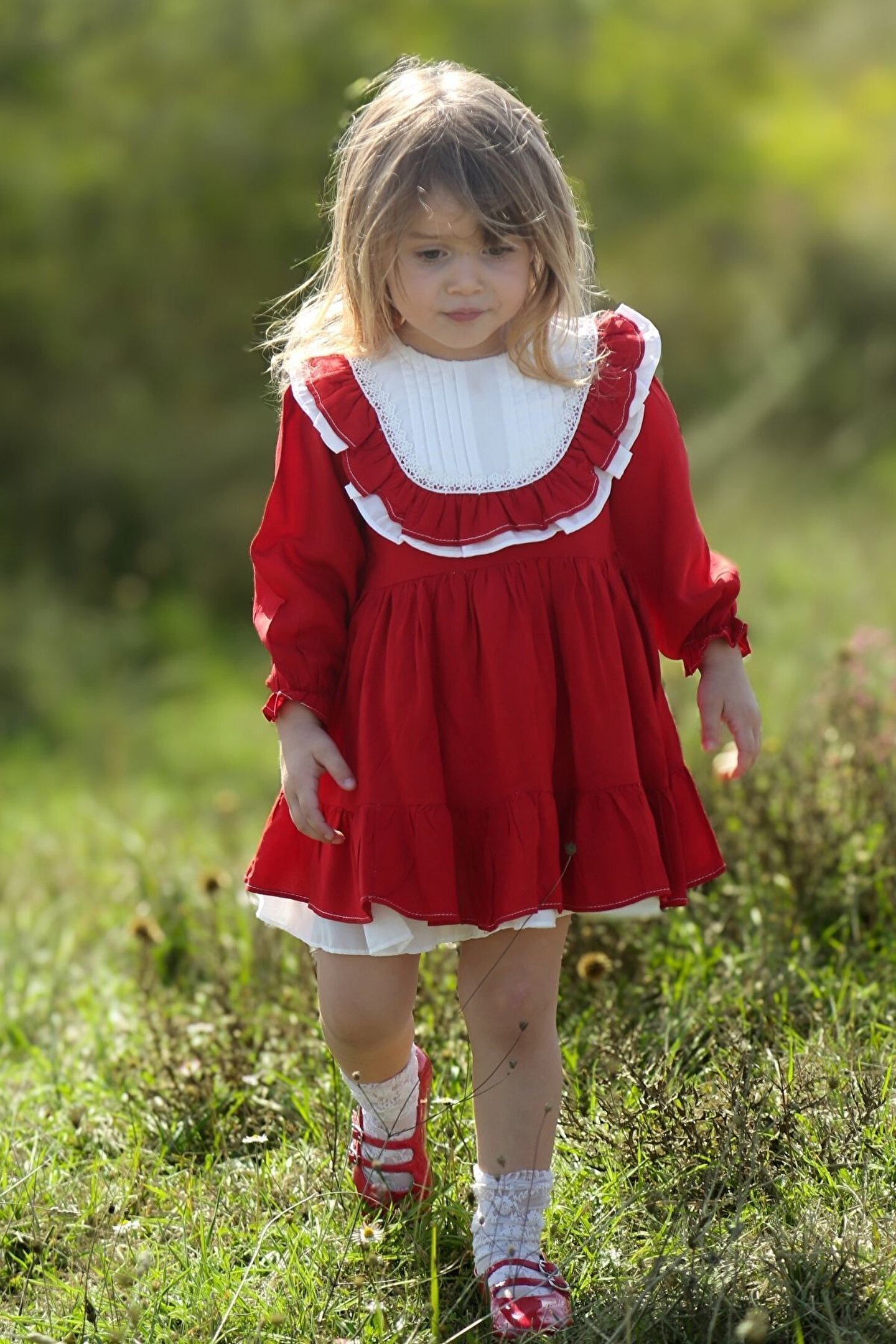 Kız Bebek Elbise Kız Çocuk Elbise Yakalı Doğum Günü Parti Düğün Özel Gün Uzun Kol Astarlı Çiçekli