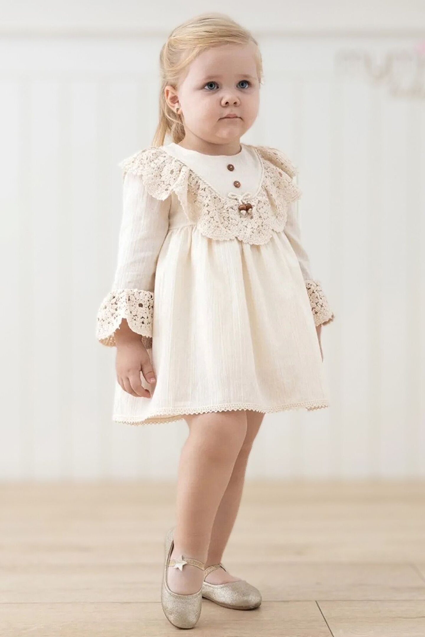 Kız Bebek Elbise Kız Çocuk Elbise Doğum Günü Parti Düğün Elbise Uzun Kol Astarlı Dantelli Bebek Giyi