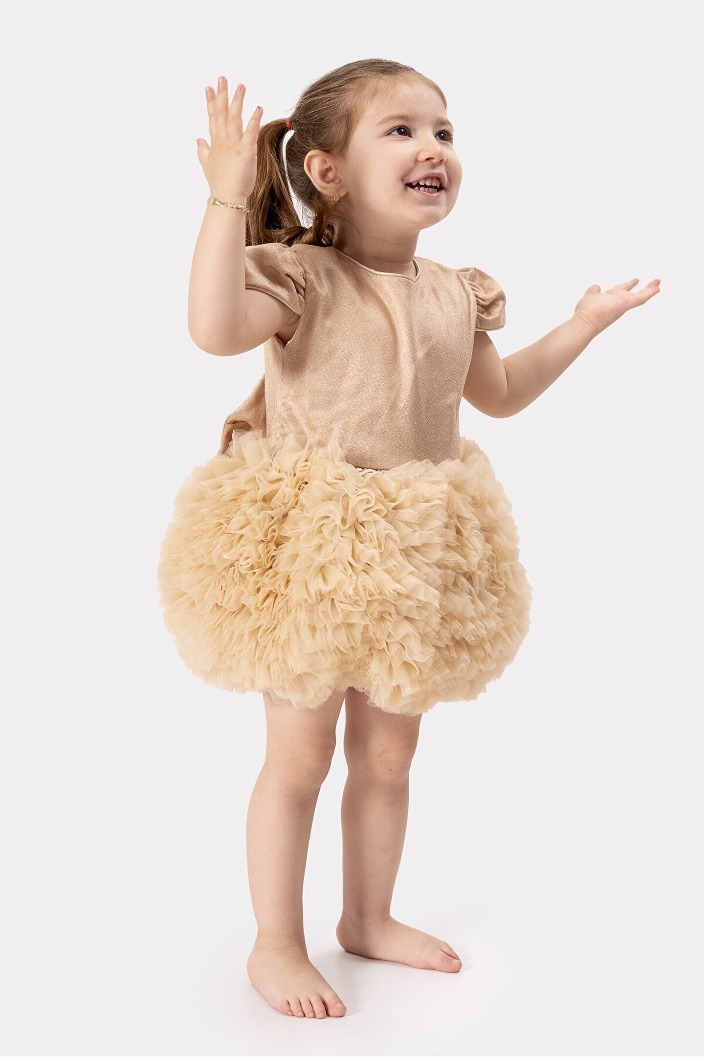 Yazlık Elbise Kısa Kollu Tüllü Tütü Astarlı Kız Çocuk Elbise Bebek Giyim Kız Bebek Elbise