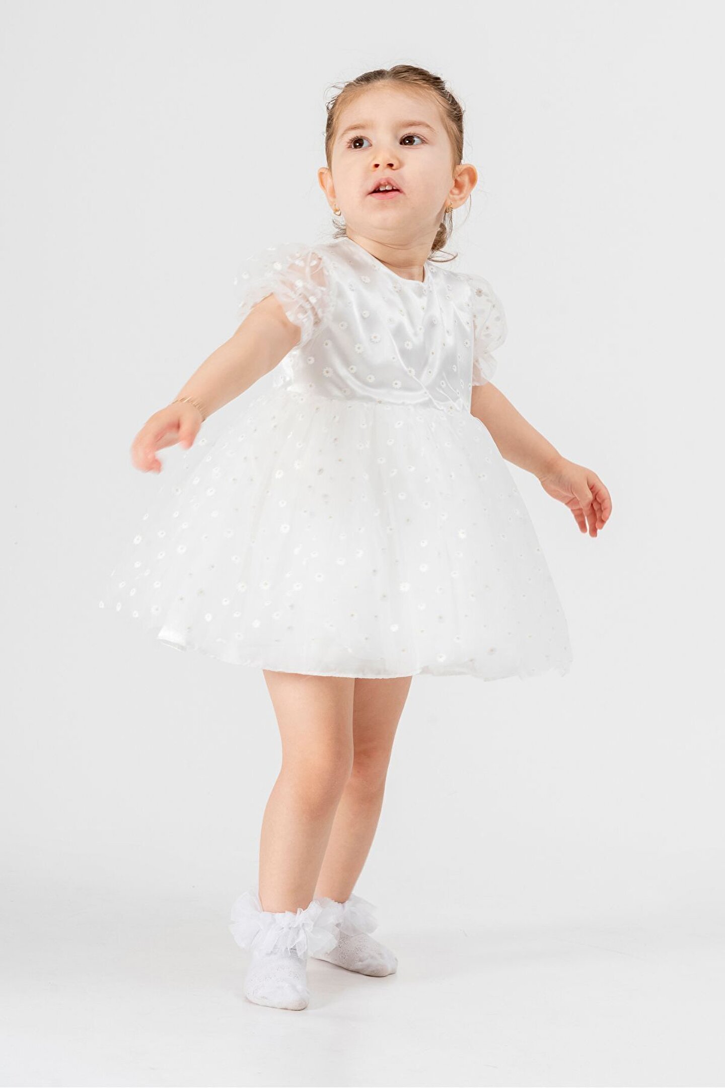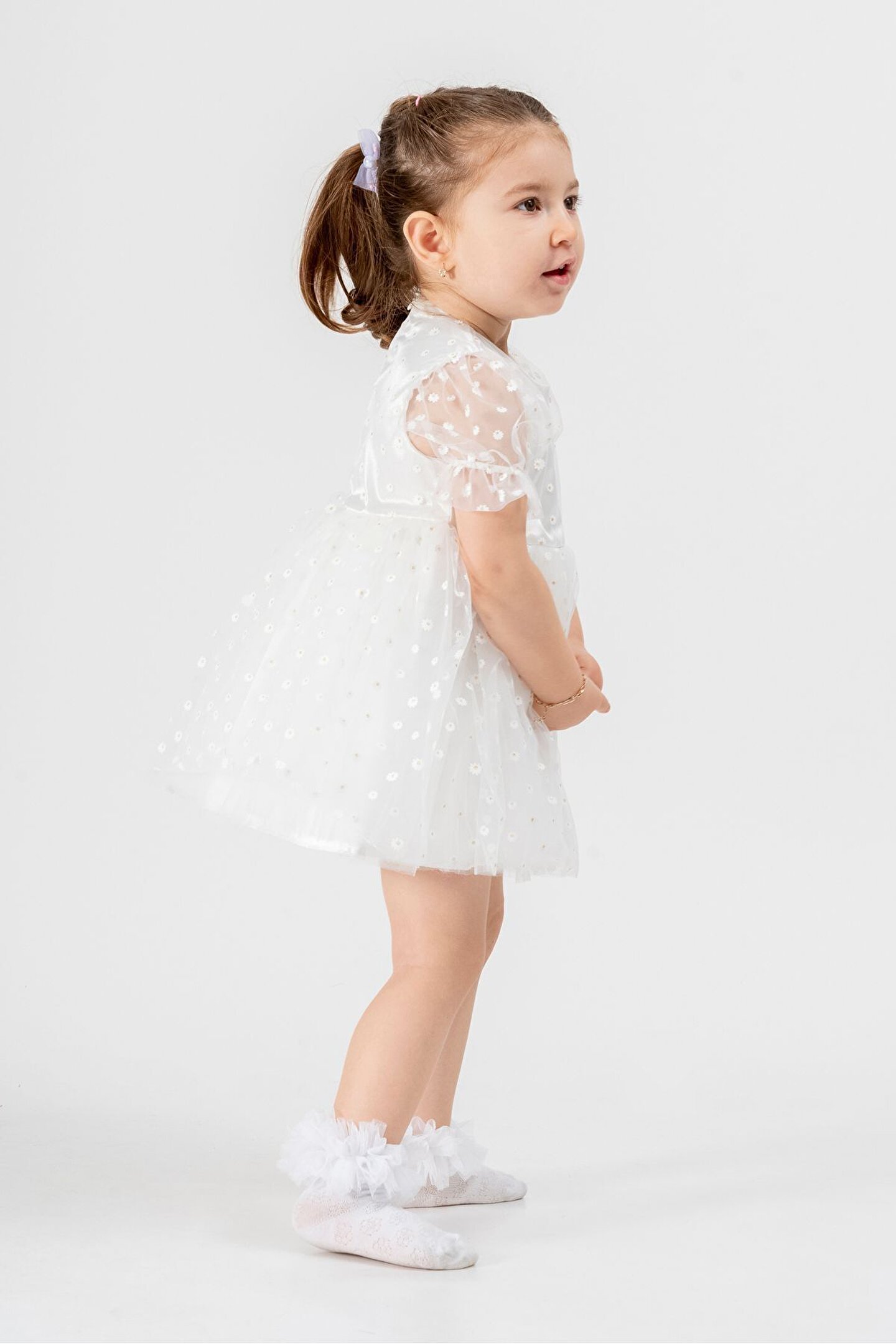 Desenli tül detaylı özel gün elbisesi: Küçük prenseslerin özel günlerindeki büyüleyici görünümlerini tamamlayacak bu elbise, zarif desenli tül detaylarıyla öne çıkıyor. ; Rahat kısa kollu tasarımı ve şık kesimiyle dikkatleri üzerine çekiyor, özel günlerde unutulmaz bir izlenim bırakıyor. ; Özellikler: Desenli tül detaylar: Elbisenin etek kısmında ve bel bölgesinde yer alan desenli tül detayları, zarafetin ve inceliğin simgesidir. ; Bu detaylar, elbiseye göz alıcı bir dokunuş katarak küçük prensesinizin masalsı bir görünüm elde etmesini sağlar. ; Rahat kısa kollu tasarım: Yazın sıcak günlerinde rahatlıkla giyilebilecek olan kısa kollu tasarım, küçük prensesinizin konforunu ön planda tutar. ; Hareket etmesini kolaylaştırır ve serin kalmasını sağlar. ; Özel günler için tasarlanmış: Doğum günleri, düğünler, mezuniyet törenleri gibi özel günler için ideal olan bu elbise, küçük prensesinizin her anında göz kamaştırmasını sağlar. ; Yüksek kaliteli malzeme: Kaliteli kumaş ve dikkatle işlenmiş detaylar, elbisenin uzun süre dayanıklılığını ve kullanım konforunu garanti eder. ; Farklı renk seçenekleri: Çeşitli renk seçenekleri arasından küçük prensesinizin tarzına ve zevkine uygun olanı seçebilir, onun özel gününde en güzel şekilde parlamasını sağlayabilirsiniz. ; Bu zarif elbise, küçük prensesinizin özel günlerinde kendini özel hissetmesini sağlar. ; Desenli tül detaylarıyla masalsı bir hava yaratan bu elbise, onun için unutulmaz anlar yaşamasını sağlar.;