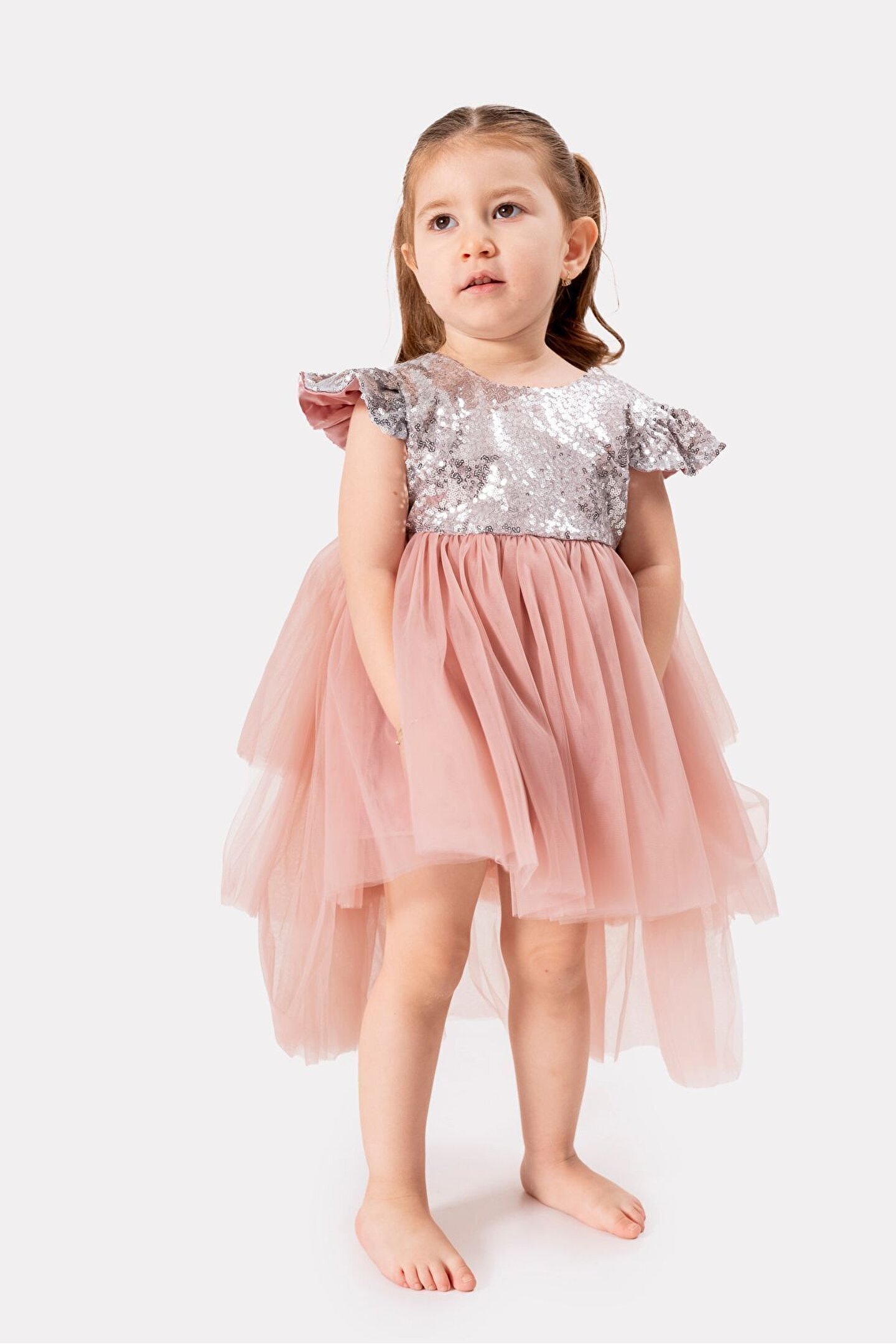 Büyüleyici Kız Çocuk Yazlık Özel Gün Elbisesi: Küçük prenseslerin yaz günlerinde zarafetlerini ve özel günlerdeki büyüleyici görünümlerini tamamlamak için tasarlanan bu elbise, tüm dikkatleri üzerine çekiyor. ; Pullu üst detayları ve tüllü, kuyruklu eteğiyle benzersiz bir şıklık sunuyor. ; Rahat kısa kollu tasarımı ise hareket özgürlüğünü maksimum seviyede tutuyor. ; Özellikler: Pullu Üst Detaylar: Elbisenin üst kısmı, incelikle işlenmiş pullarla süslenmiştir, böylece küçük prensesiniz ışıltısını en üst düzeye çıkarır. ; Tüllü, Kuyruklu Etek: Hafif ve göz alıcı tüllü etek, uzunluğuyla zarafetin simgesi olan bir kuyrukla son bulur. ; Bu detaylar, her adımda prensesinizin büyüleyici bir görünüm sergilemesini sağlar. ; Rahat Kısa Kollu Tasarım: Yazın sıcak günlerinde bile rahatlıkla giyilebilecek olan kısa kollu tasarım, küçük prensesinizin serin ve konforlu kalmasını sağlar. ; Yüksek Kaliteli Malzemeler: Elbise, dayanıklı ve konforlu olması için özenle seçilmiş yüksek kaliteli malzemelerden üretilmiştir. ; Uzun süre dayanıklılığını korur ve tekrar tekrar giyilebilir. ; Farklı Renk Seçenekleri: Çeşitli renk seçenekleri mevcuttur, böylece küçük prensesinizin tarzına ve tercihlerine uygun olanı seçebilirsiniz. ; Bu muhteşem elbise, küçük prensesinizin yaz mevsimindeki özel günlerinde unutulmaz bir görünüm elde etmesini sağlayacak. ; Her bir detayıyla zarif ve büyüleyici olan bu elbise, onun için unutulmaz anlar yaratacak.;