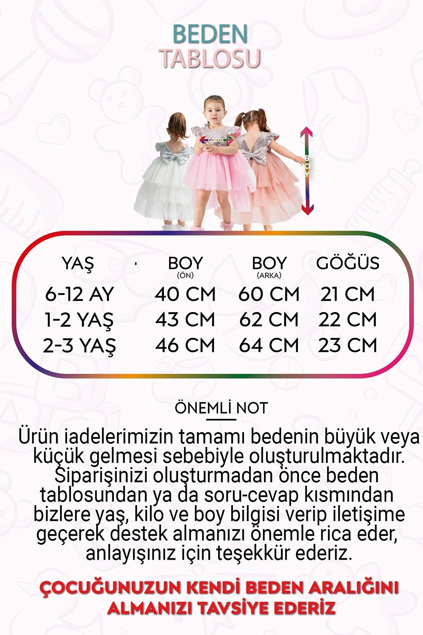 Büyüleyici Kız Çocuk Yazlık Özel Gün Elbisesi: Küçük prenseslerin yaz günlerinde zarafetlerini ve özel günlerdeki büyüleyici görünümlerini tamamlamak için tasarlanan bu elbise, tüm dikkatleri üzerine çekiyor. ; Pullu üst detayları ve tüllü, kuyruklu eteğiyle benzersiz bir şıklık sunuyor. ; Rahat kısa kollu tasarımı ise hareket özgürlüğünü maksimum seviyede tutuyor. ; Özellikler: Pullu Üst Detaylar: Elbisenin üst kısmı, incelikle işlenmiş pullarla süslenmiştir, böylece küçük prensesiniz ışıltısını en üst düzeye çıkarır. ; Tüllü, Kuyruklu Etek: Hafif ve göz alıcı tüllü etek, uzunluğuyla zarafetin simgesi olan bir kuyrukla son bulur. ; Bu detaylar, her adımda prensesinizin büyüleyici bir görünüm sergilemesini sağlar. ; Rahat Kısa Kollu Tasarım: Yazın sıcak günlerinde bile rahatlıkla giyilebilecek olan kısa kollu tasarım, küçük prensesinizin serin ve konforlu kalmasını sağlar. ; Yüksek Kaliteli Malzemeler: Elbise, dayanıklı ve konforlu olması için özenle seçilmiş yüksek kaliteli malzemelerden üretilmiştir. ; Uzun süre dayanıklılığını korur ve tekrar tekrar giyilebilir. ; Farklı Renk Seçenekleri: Çeşitli renk seçenekleri mevcuttur, böylece küçük prensesinizin tarzına ve tercihlerine uygun olanı seçebilirsiniz. ; Bu muhteşem elbise, küçük prensesinizin yaz mevsimindeki özel günlerinde unutulmaz bir görünüm elde etmesini sağlayacak. ; Her bir detayıyla zarif ve büyüleyici olan bu elbise, onun için unutulmaz anlar yaratacak.;