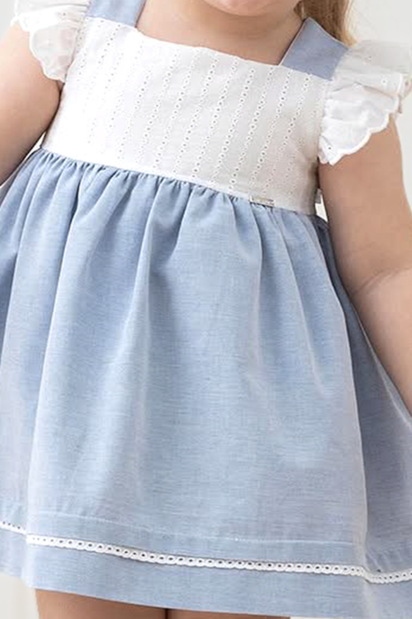 Yazlık Kısa Kollu Kolsuz Askılı Dantel Detaylı Astarlı Kız Çocuk Elbisesi: Küçük prensesinizin yaz mevsiminde özel günlerde zarafetini ve şıklığını ön plana çıkaracak bu elbise, önünde bulunan fiyonk detayı ve dantel işlemeleriyle tasarlanmıştır.; Ayrıca etek kısmında bulunan yırtmaç detayı, hareket özgürlüğü sağlarken bebeğinizin zarif bir görünüm sergilemesini sağlar.; Özellikler: Dantel Detaylar: Elbisenin ön kısmında ve kollarda bulunan dantel detaylar, zarafet ve incelik katarken, küçük prensesinizin görünümünü daha etkileyici hale getirir.; Önünde Fiyonk Detayı: Elbisenin ön kısmında bulunan fiyonk detayı, sevimliliği ve şıklığı artırır.; Küçük prensesinizin görünümüne hoş bir dokunuş ekler.; Yırtmaç Detayı: Etek kısmında bulunan yırtmaç detayı, hareket özgürlüğü sağlarken, elbisenin tasarımına dinamizm katar.; Kısa Kollu Tasarım: Sıcak yaz günlerinde rahatlıkla giyilebilecek kısa kollu tasarım, bebeğinizin serin kalmasını sağlar ve özgürce hareket etmesine olanak tanır.; Yazlık Kullanıma Uygun: Hafif yapısı ve nefes alabilen kumaşıyla yaz aylarında rahatlıkla giyilebilir.; Özel Günler İçin Uygun: Özel günlerde tercih edilebilecek şık tasarımıyla bebeğinizin her anında göz kamaştırmasını sağlar.; Bu yırtmaçlı, önü fiyonklu ve dantel detaylı kısa kollu Kolsuz Askılı kız çocuk elbisesi, küçük prensesinizin yazın serin ve şık kalmasını sağlarken, aynı zamanda özel günlerde de zarafetini tamamlar.; Zarif detaylarıyla bezenmiş bu elbise, bebeğinizin tarzını ve güzelliğini ön plana çıkarır.