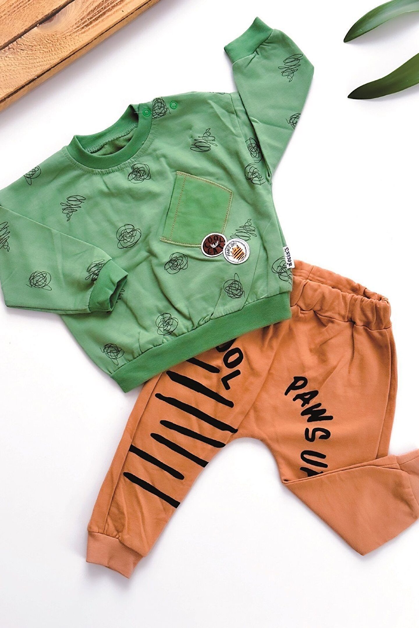 Baby Animals Erkek Bebek Çocuk Takım Uzun Kollu Alt Üst Takım Bebek Giyim Çocuk Giyim
