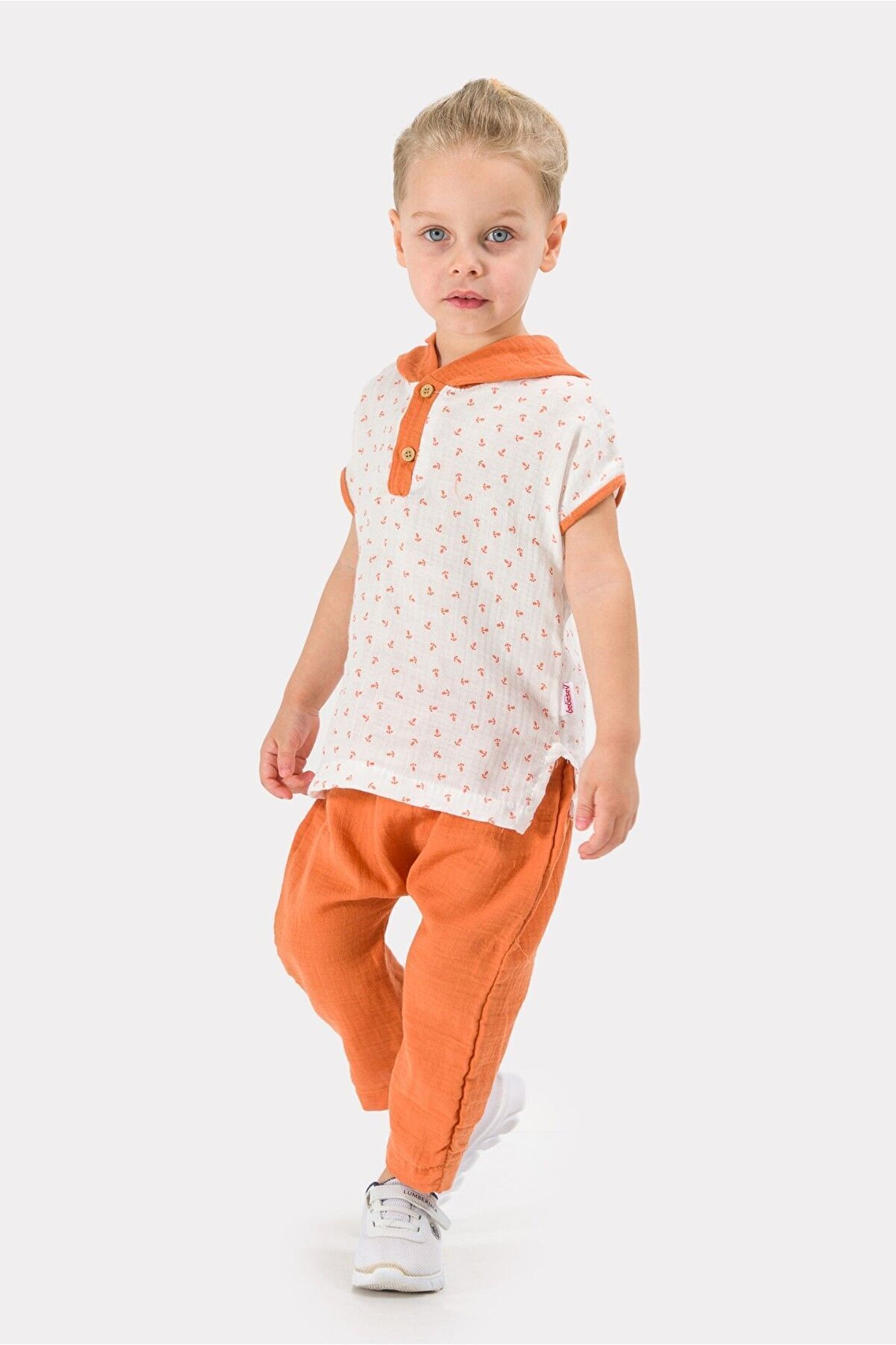 Baby Animals Erkek Bebek Şapkalı Yazlık Müslin Kumaş Müslin Alt Üst Bebek Takımı