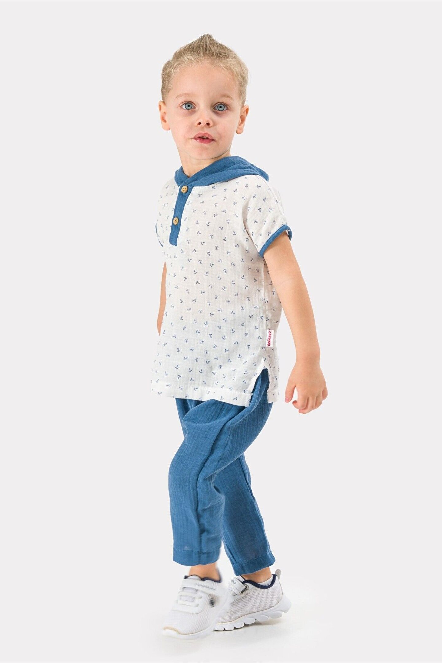 Baby Animals Erkek Bebek Şapkalı Yazlık Müslin Kumaş Müslin Alt Üst Bebek Takımı